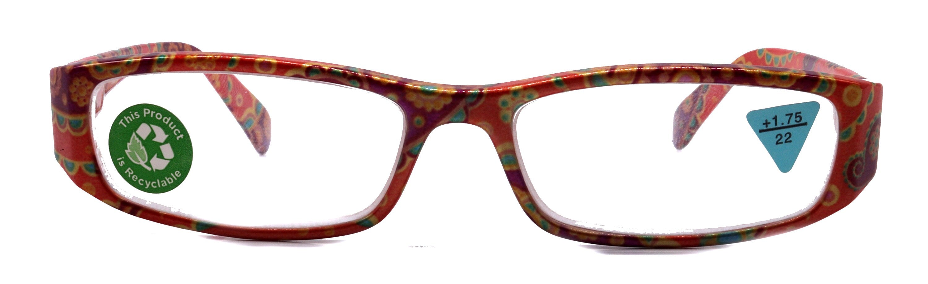 Florence, (Premium) Reading Glasses, High End Readers +1.25 to +3 Magnifying. (Paisley, Orange) optical, Rectangular Frame. NY Fifth Avenue