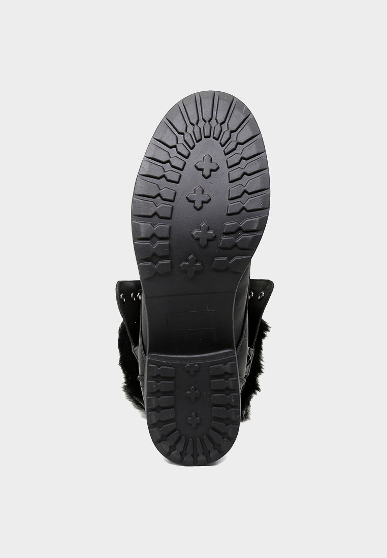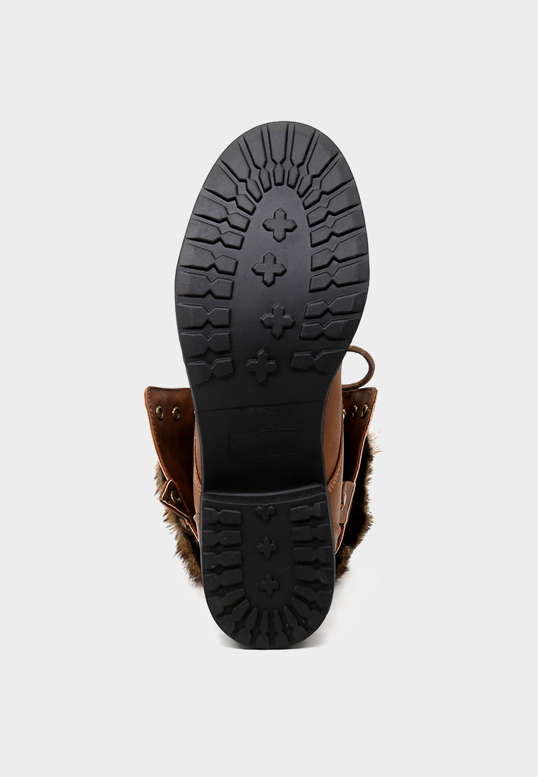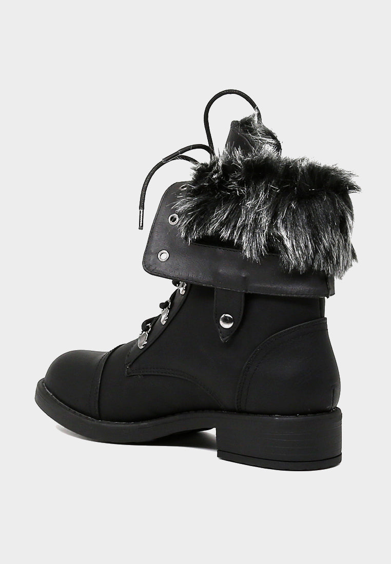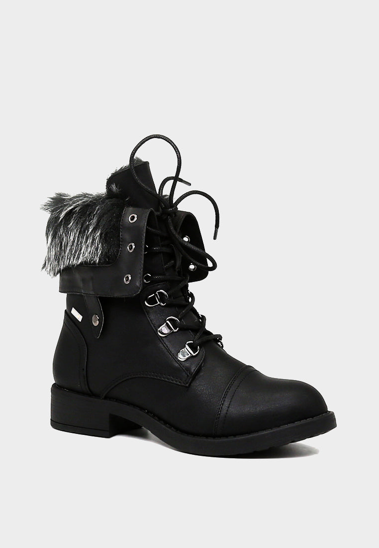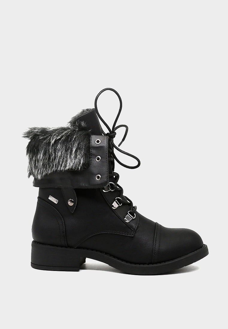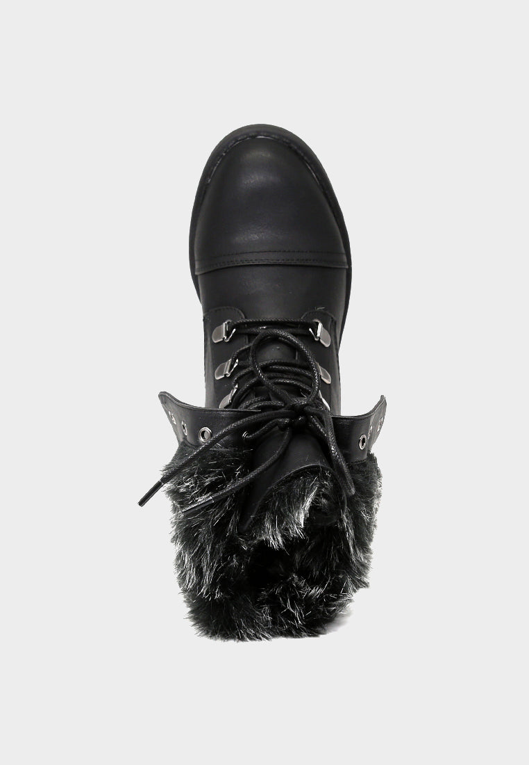 Two way wear warmer boot with faux fur detail, keeps you warm and stylish! The lace up winter ankle boot has shiny metallic hardware for eyelets which look gorgeous on feet.