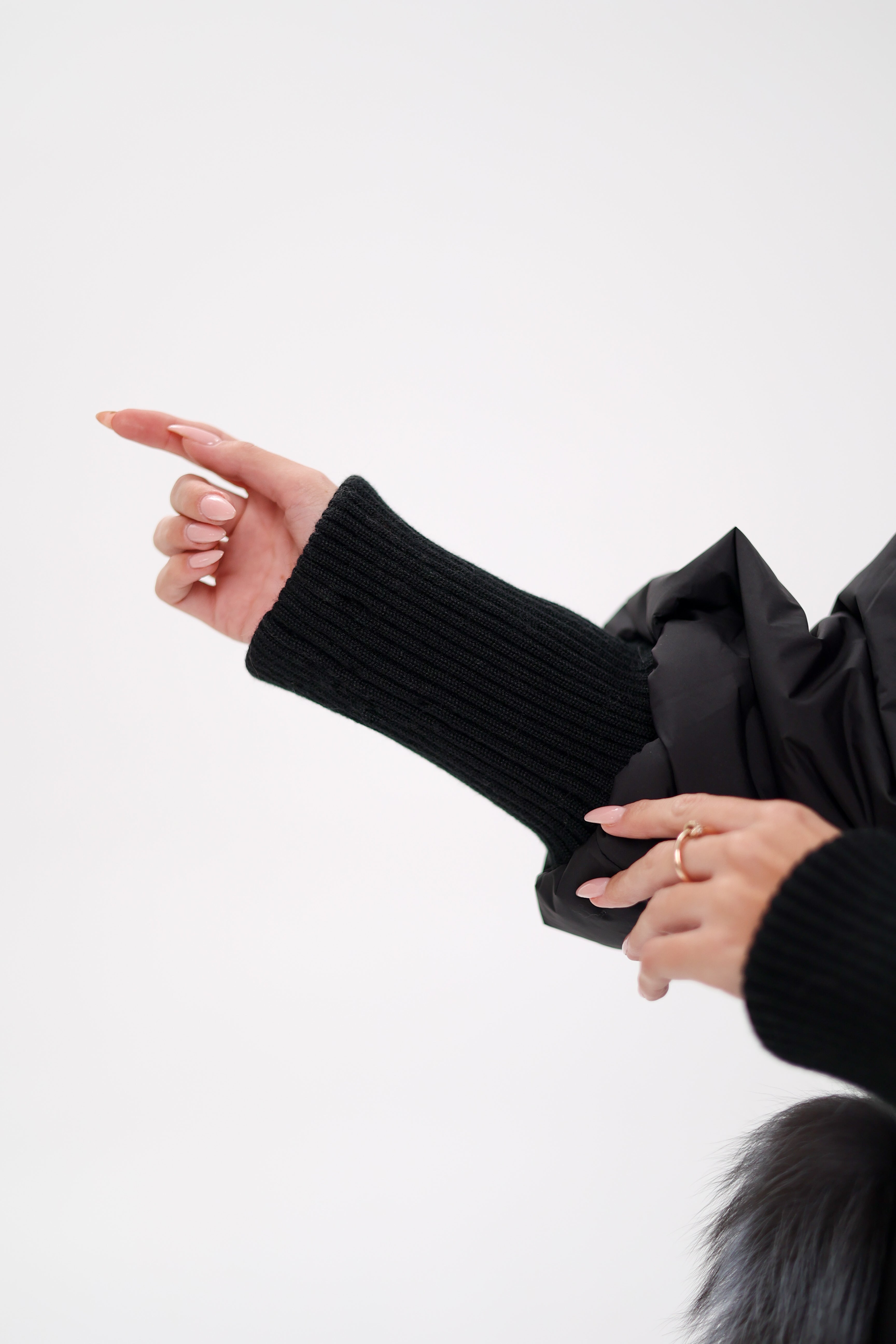 This sophisticated black coat combines warmth and luxury, filled with premium down for maximum insulation. The standout feature is its genuine Silverfox fur trim on the collar and oversized pockets, adding a plush, glamorous touch to its modern design. With ribbed cuffs for extra comfort and an adjustable waist for a tailored fit, this coat is perfect for those cold winter days when style and coziness are equally important.