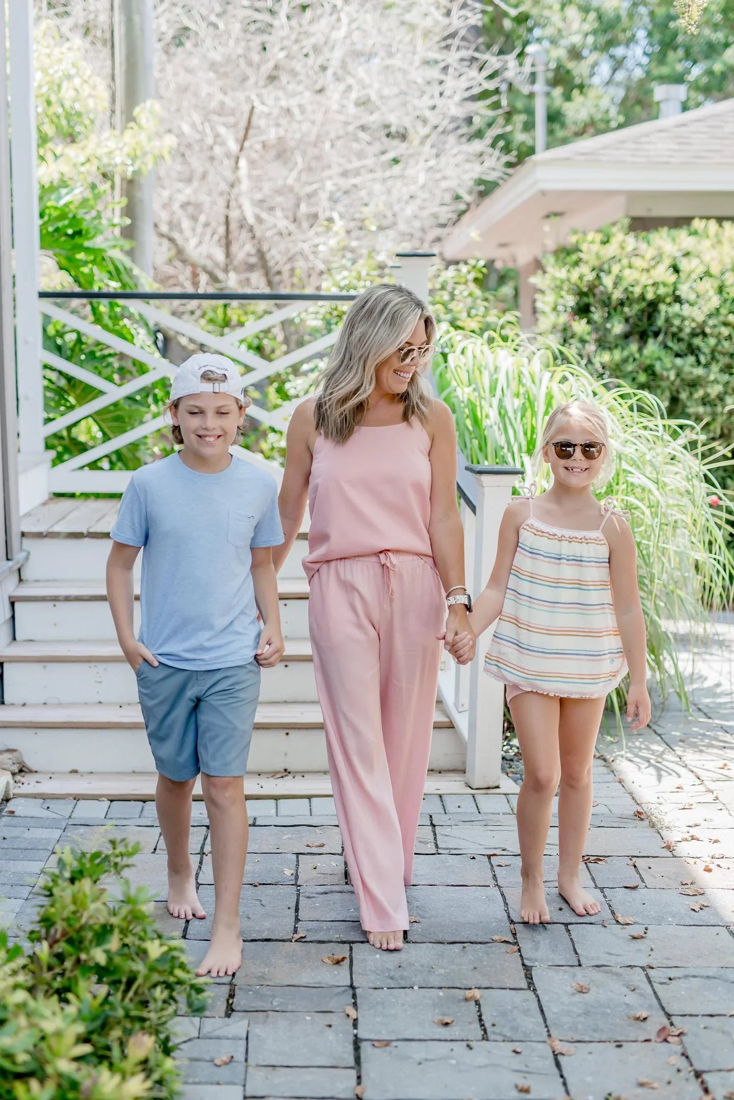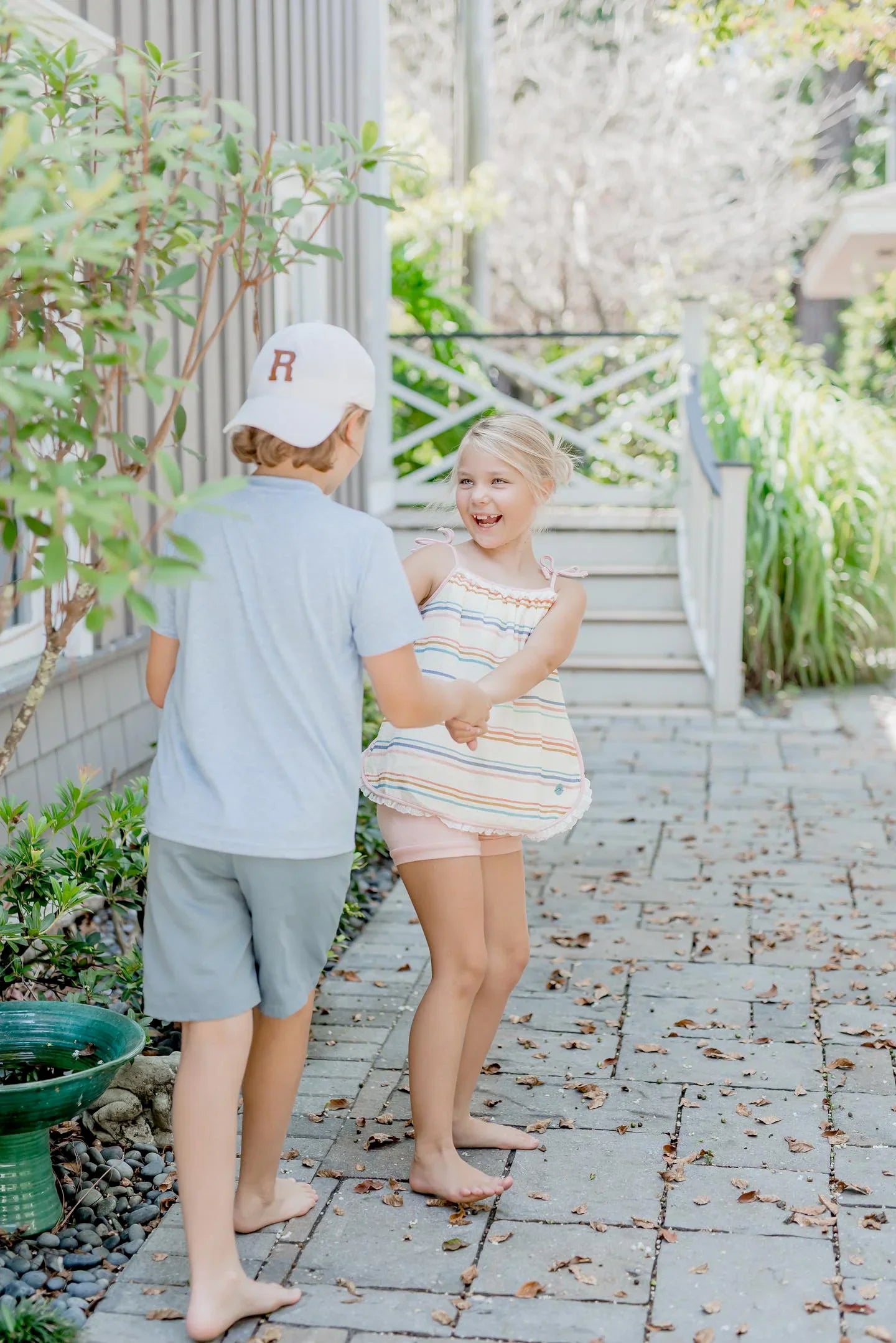 The summer wardrobe essential: the Girls Stripe Tank Top Set! She'll look extra cute in the stripe tank top and coordinating shorts. Perfect for a day at the beach or a picnic in the park! (Don't forget the sunscreen!)