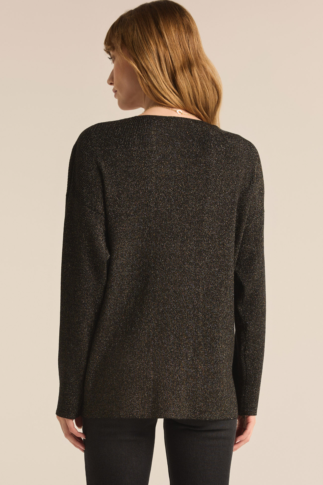 The Goldie Vee Neck Sweater features long sleeves, v-neckline, long bodice and is made in a mid-weight, ribbed knit fabric. Pairs well with slacks or jeans.