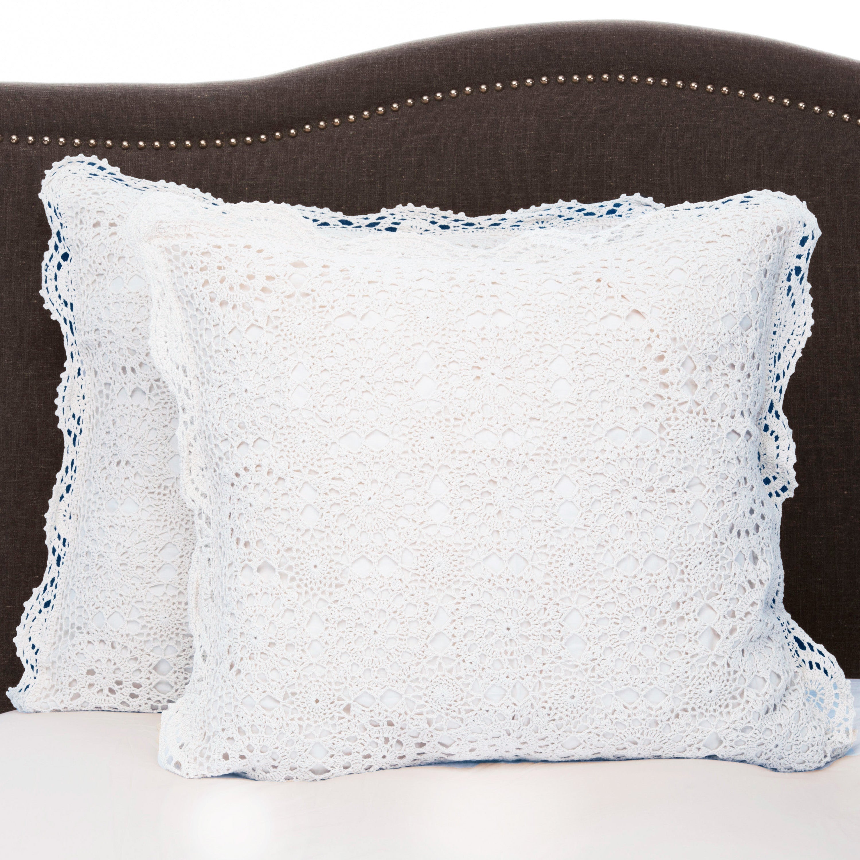 Add a touch of romance to any bedroom with our elegant pillow shams.  Crochet is a centuries-old technique that produces intricate designs and beautiful details. We continue this tradition, making each sham by hand.  The delicate open-work design is attached to a solid cotton backing which provides total coverage for a pillow.  The back features a simple envelope closure for easy on and off.  The shams can be machine washed and dried, and we suggest washing them inside a sweater bag to avoid any snags.