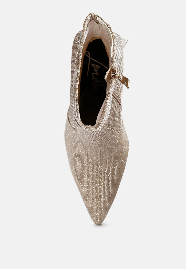 Disco ready - the boots are fancy and all things shiny with the shimmer. The construction of the block heels and pointed toe is sharp and adds an element of intrigue to the boots. The boots are ideal for a party night during cold weather so you can feel comfortable and look fashionably top-notch. It has side zipper opening which makes it easy to wear.