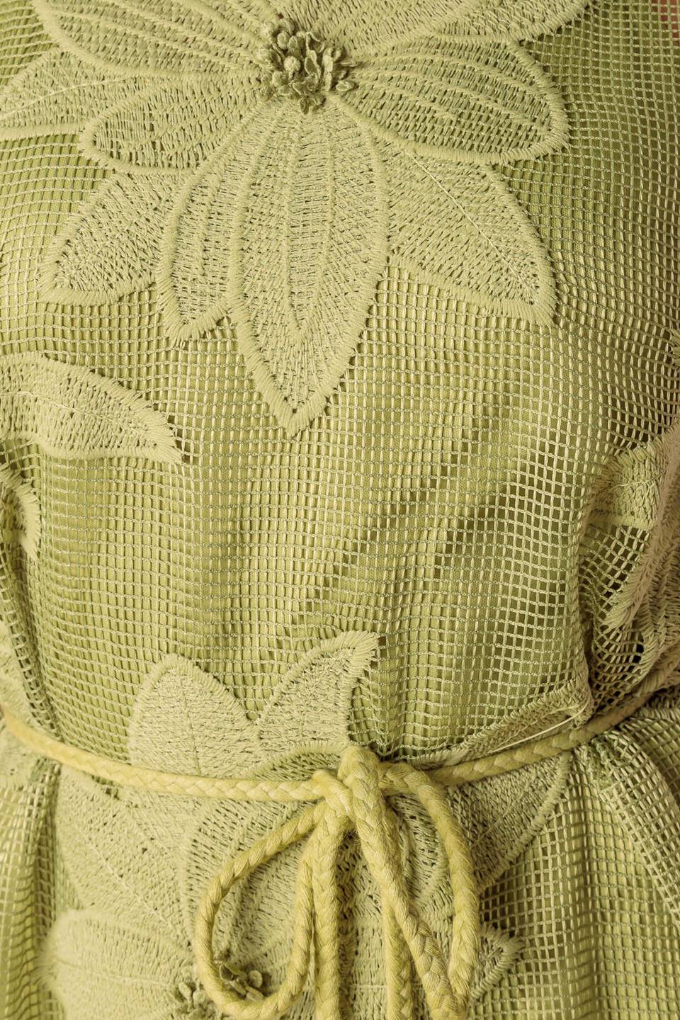 A sage green woven lace midi dress featuring round neckline, sleeveless, braided belt with tassel, cami and back button closure.