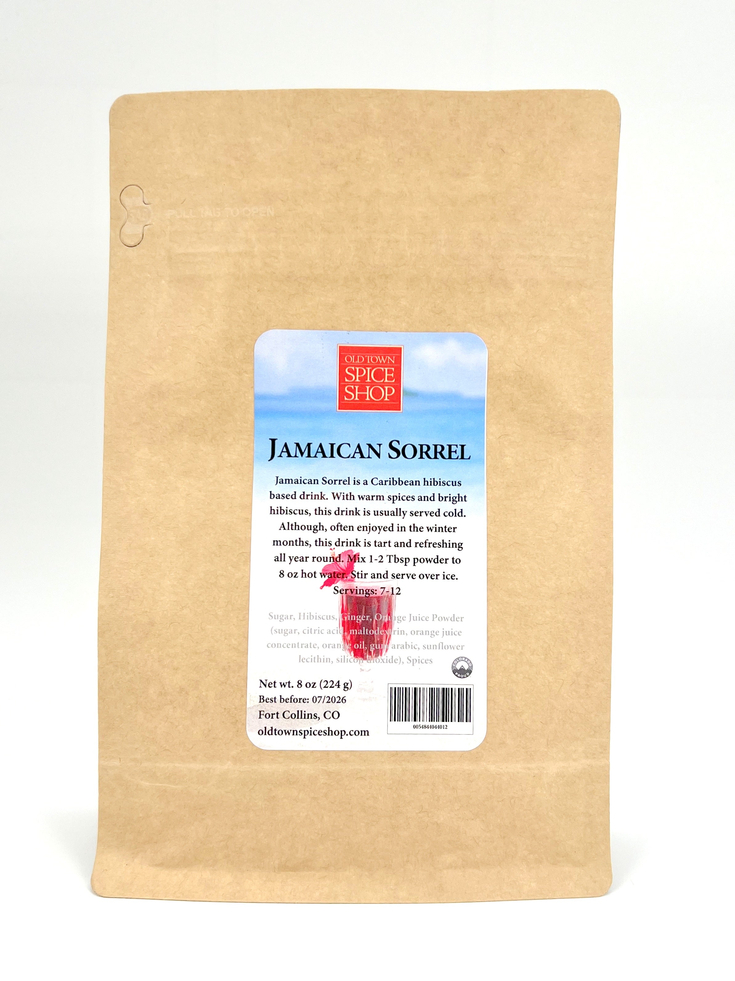 Jamaican Sorrel is a Caribbean hibiscus based drink. With warm spices and bright hibiscus, this drink is usually served cold. Although, often enjoyed in the winter months, this drink is tart and refreshing all year round. Mix 1-2 Tbsp. powder to 8 oz. hot water. Stir and serve over ice. Servings: 7-12