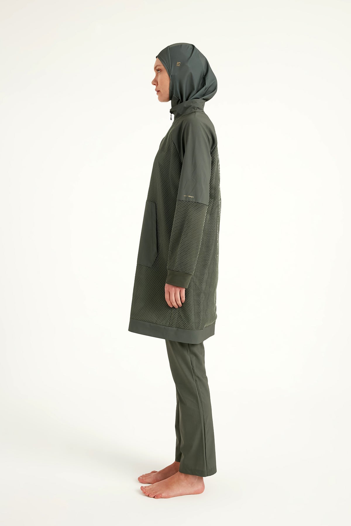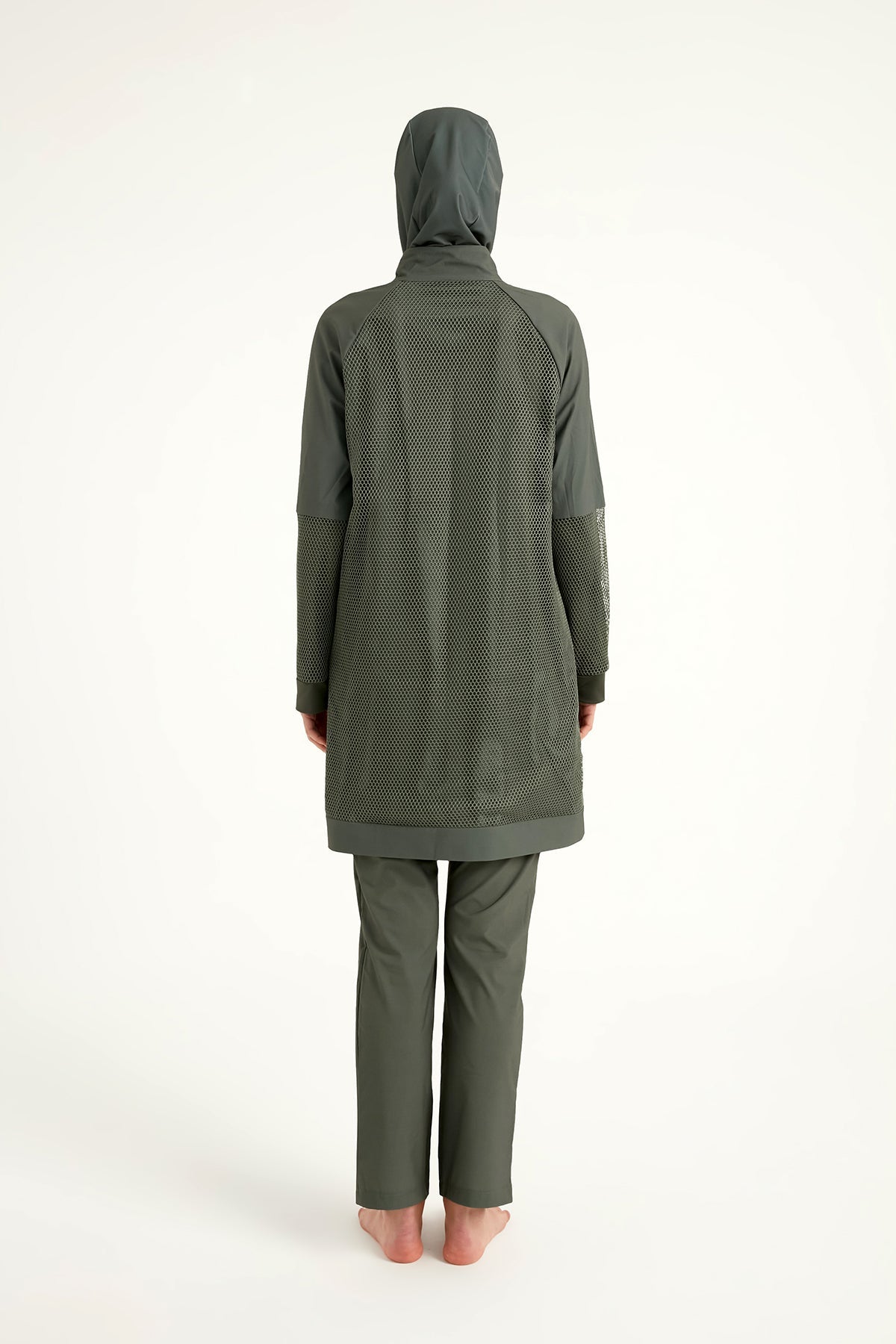 Marina Khaki Full Coverage Tulle Detail Modest Swimwear Burkini Set M2534-3