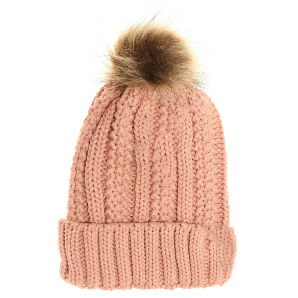 Kids Fuzzy Lined Fur Pom C.C Beanie