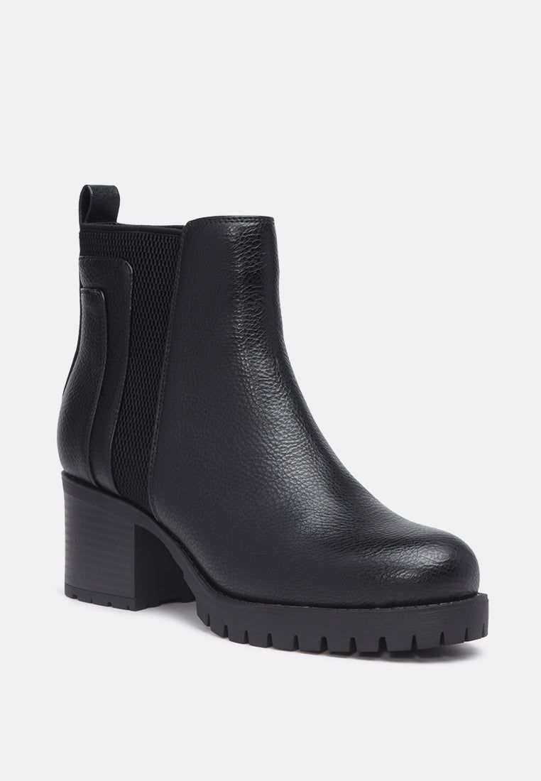 Black Chunky sole boots with elasticated gussets. The easy-to-wear slip-on style is water and dirt-resistant and is a trending must-buy!