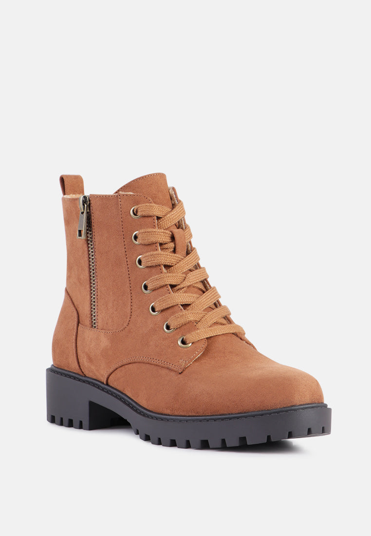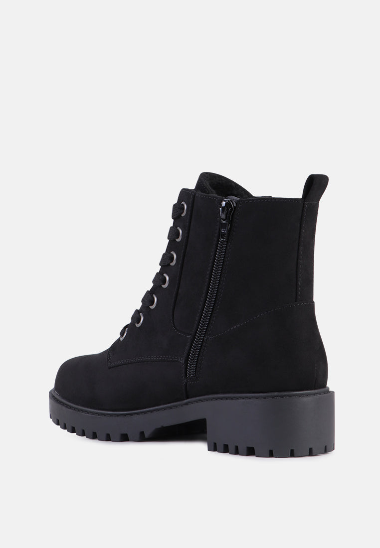 Hey Girl, pamper yourself with this comfy pair of boots. Showcasing a lace-up fastening & side zip that promises to offer convenience while walking in them.