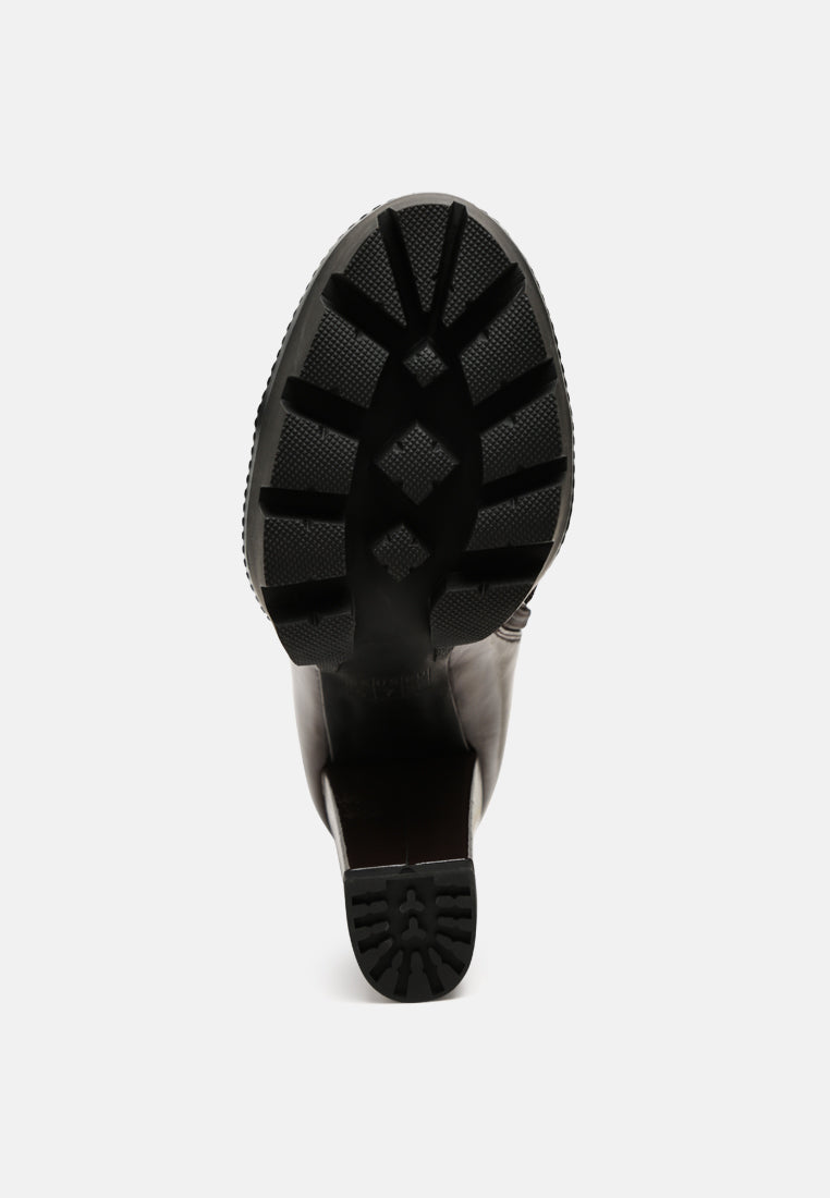 Brace yourself as the queen of finesse is here. Our Lobra High Heel Lace Up Ankle Boots are perfect for dancing the night out. These girls' boots come with metal eyelets detail and lace-up design, highlighting their glam quotient. These high-heeled boots come with paneled columns and a side zipper, providing you with optimum comfort. A lightly padded insole adds to your comfort and the back buckle definitely adds to your style quotient.