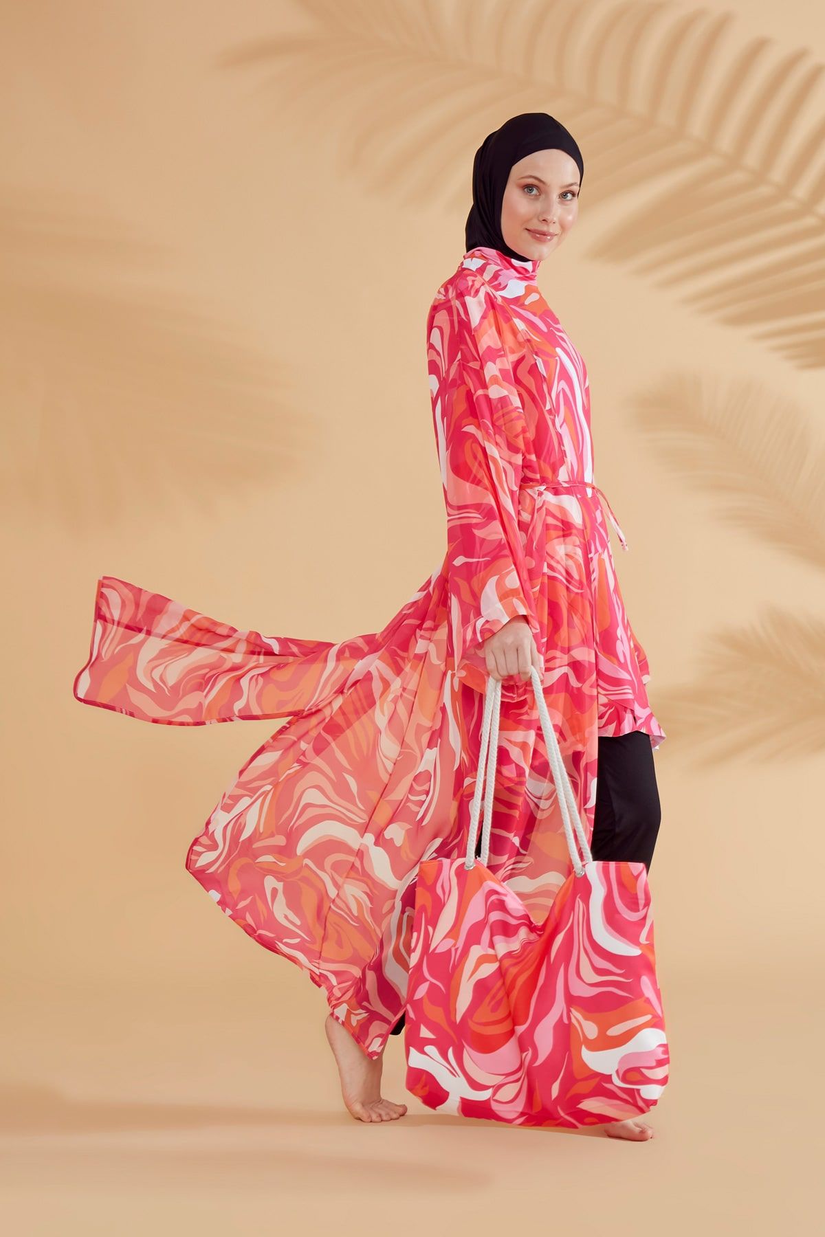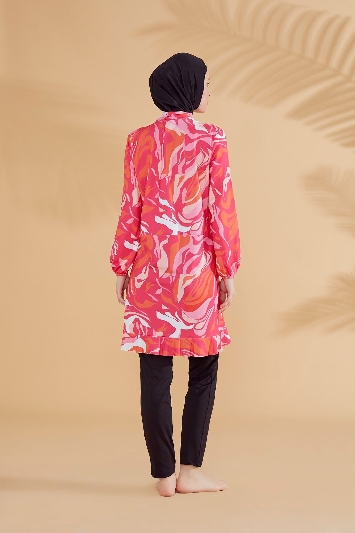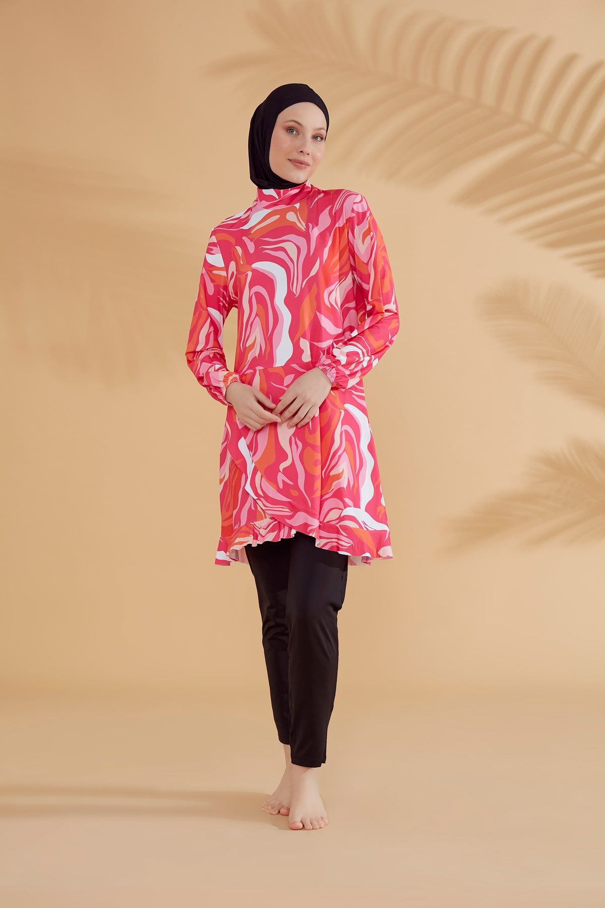 • There are drawstrings on the tunic and tights to prevent your swimsuit from riding up.