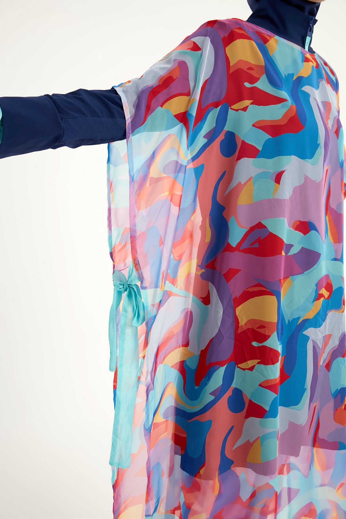 The P2505 pareo stands out with its vivid multicolor print that reflects the vibrant spirit of summer. Featuring a wide range of hues from tangerine to violet, blue to pink, this design elevates your beach style. Its oversize cut offers a comfortable fit without clinging to the body, while the adjustable side tie allows you to customize the form. Crafted from airy chiffon-like fabric, it feels light and breathable even in the hottest weather. For a coordinated family beach look, explore the matching girls' pareo and boys' swim shorts in the same print.