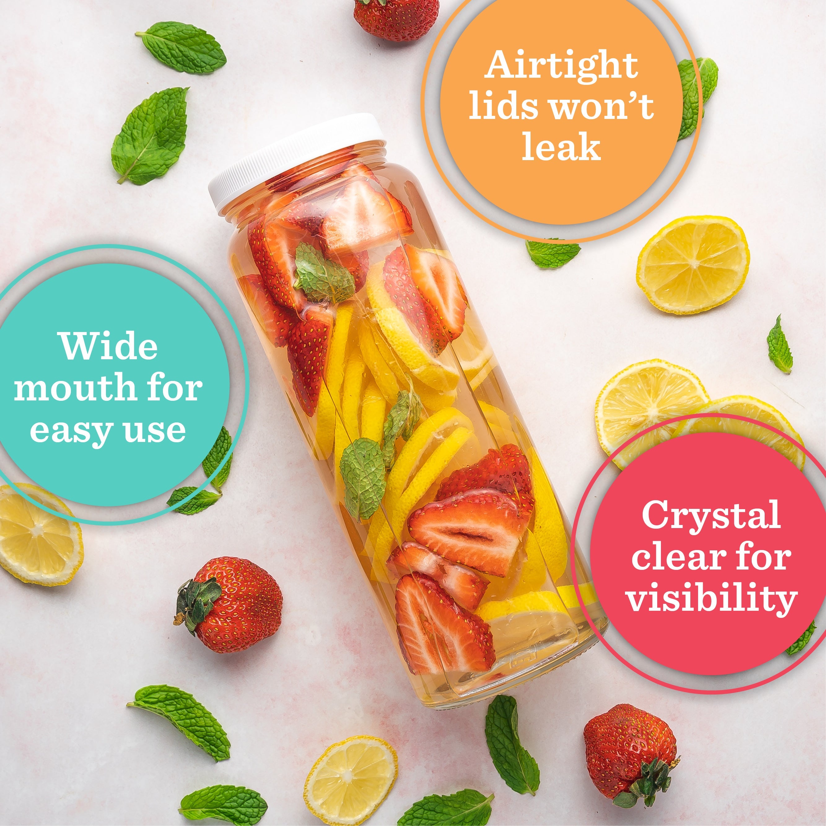 FOOD & BEVERAGE PREP - plan your meals for the week and keep them fresh in these large capacity bottles. Make large batches of soup, salads, or simply fill them with chopped veggies and cut-up fruits. The space-saving features of these bottles allow for greater food storage that takes up minimal space in your refrigerator.