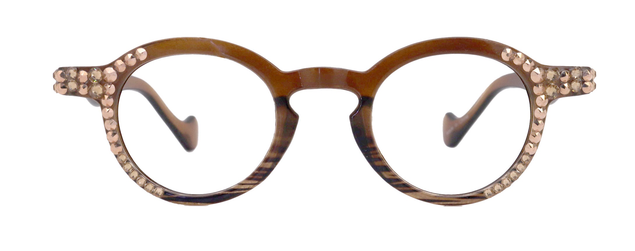 Orlando Bling Reading Glasses, W Rose Gold N Light Colorado European crystals, Magnifying Eyeglasses, (Brown) (Round) NY Fifth Avenue