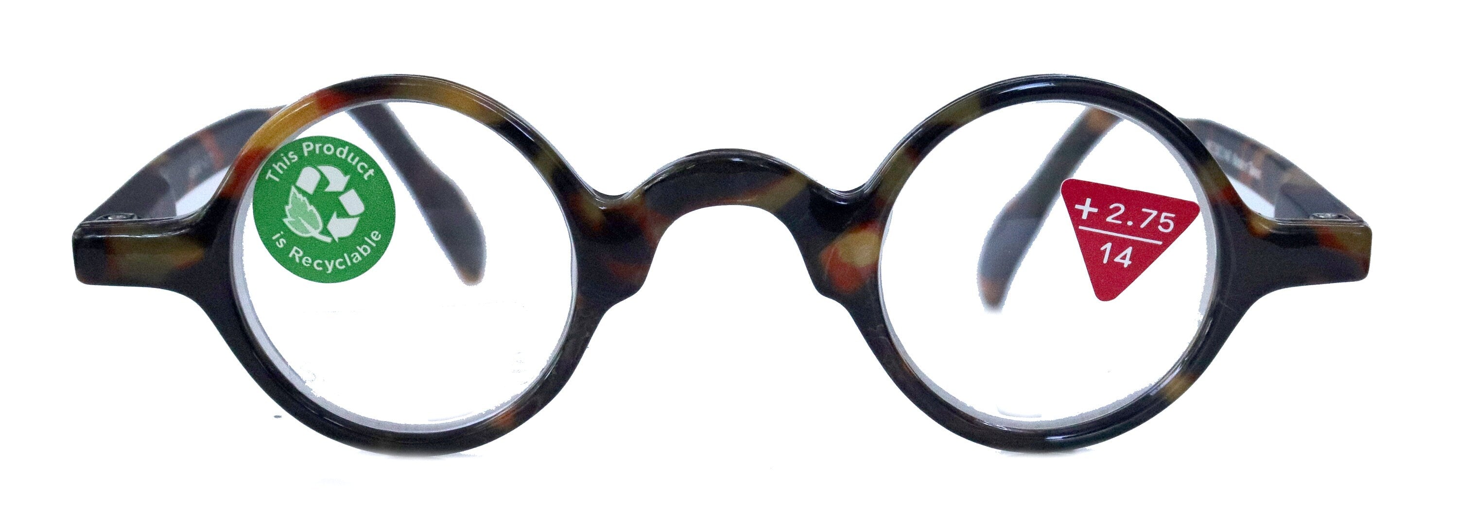 Picasso, (Premium) Reading Glasses, High End Readers +1.25 to +3 magnifying, Circle optical Frames. Round Tortoise (Brown) NY Fifth Avenue.