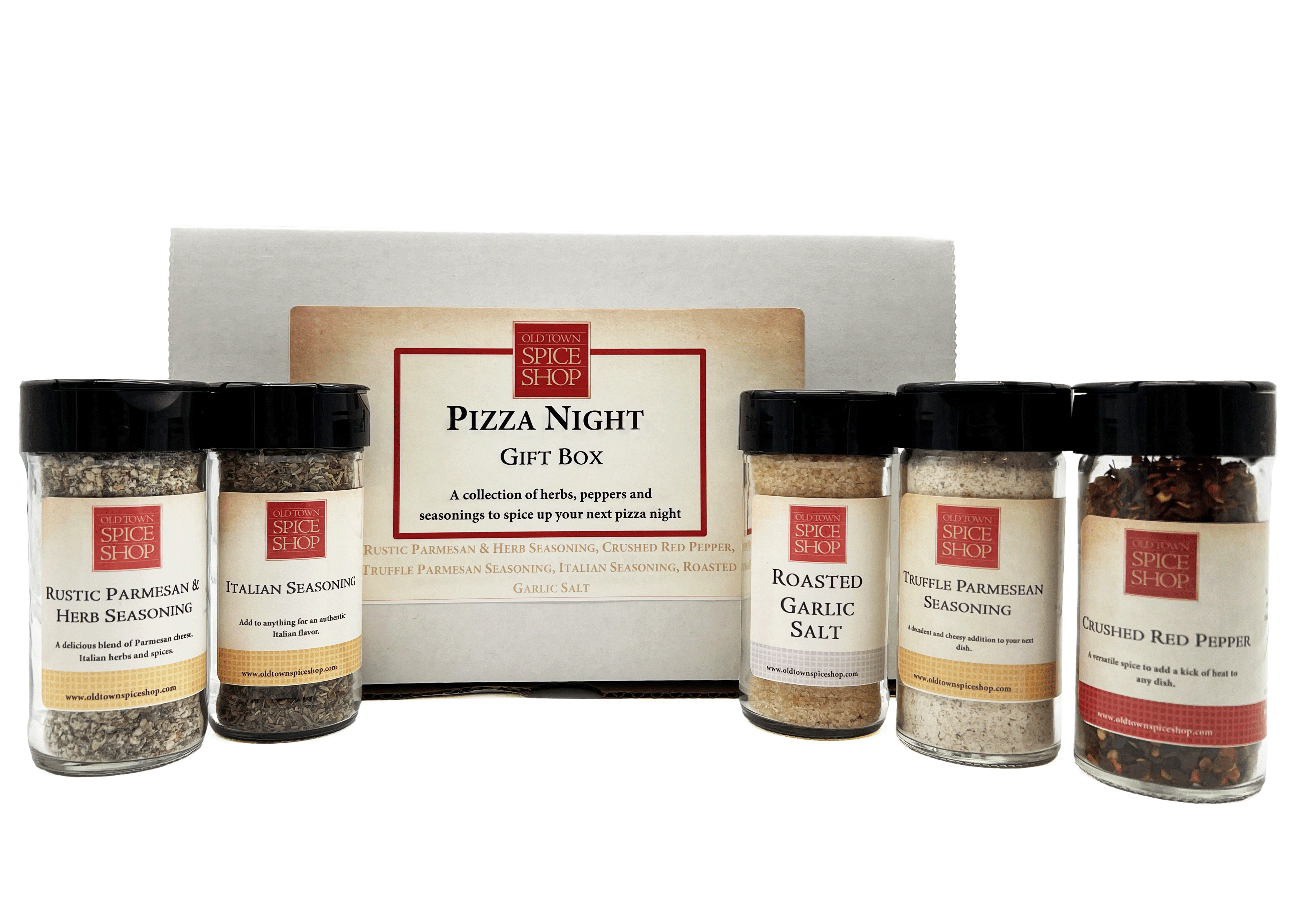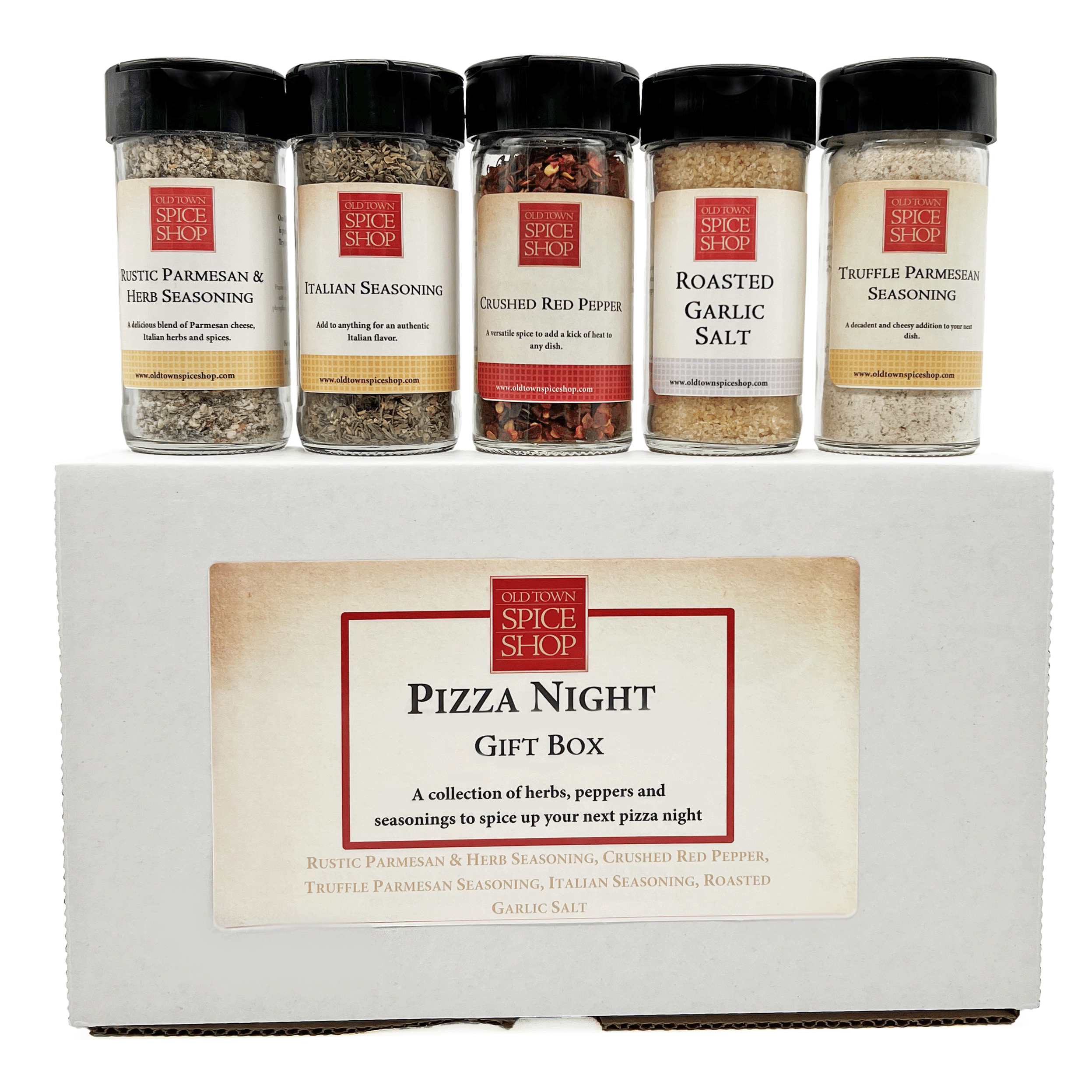 2 oz Jar Rustic Parmesan & Herb Seasoning, 1.4 oz Jar Crushed Red Pepper, 2 oz Jar Truffle Parmesan Seasoning, 0.7 oz Jar Italian Seasoning, 3.2 oz Jar Roasted Garlic Salt