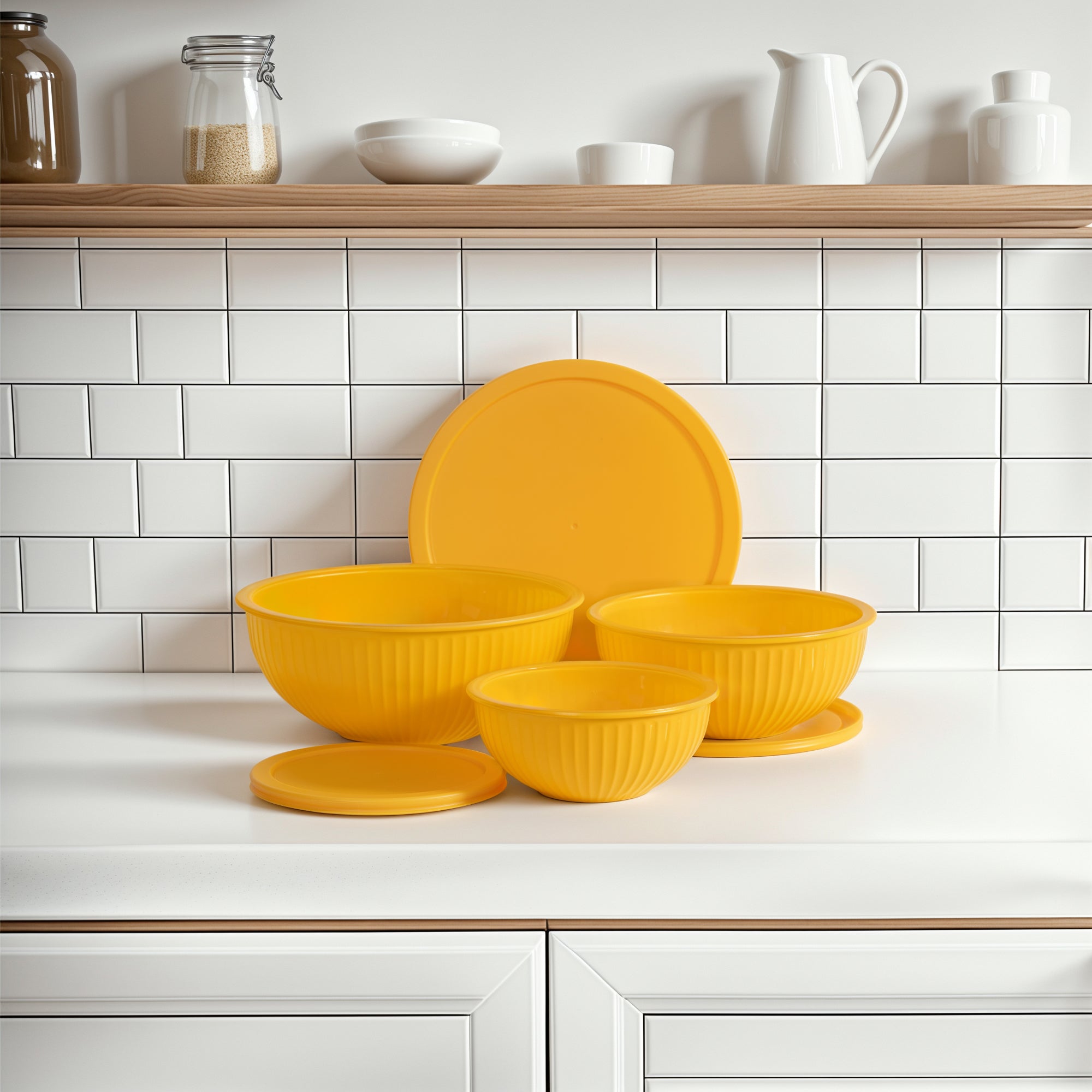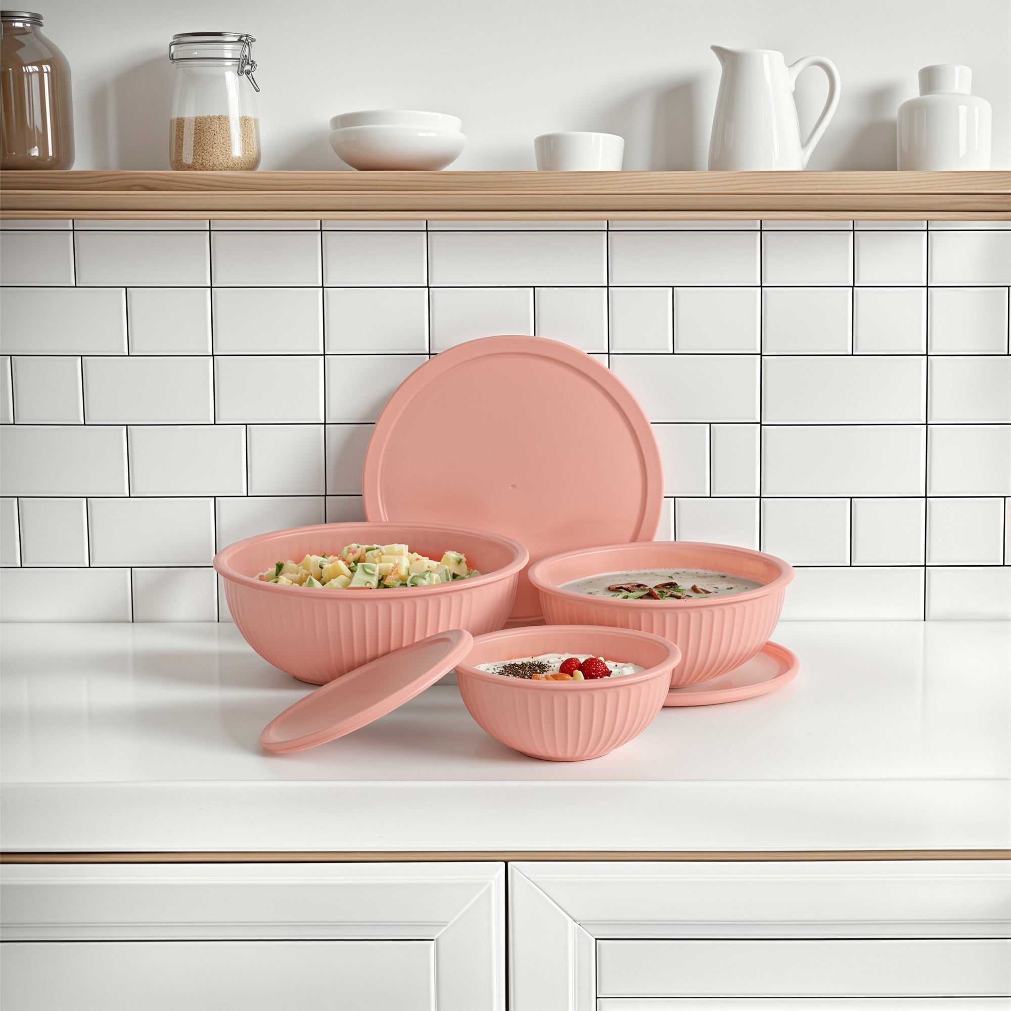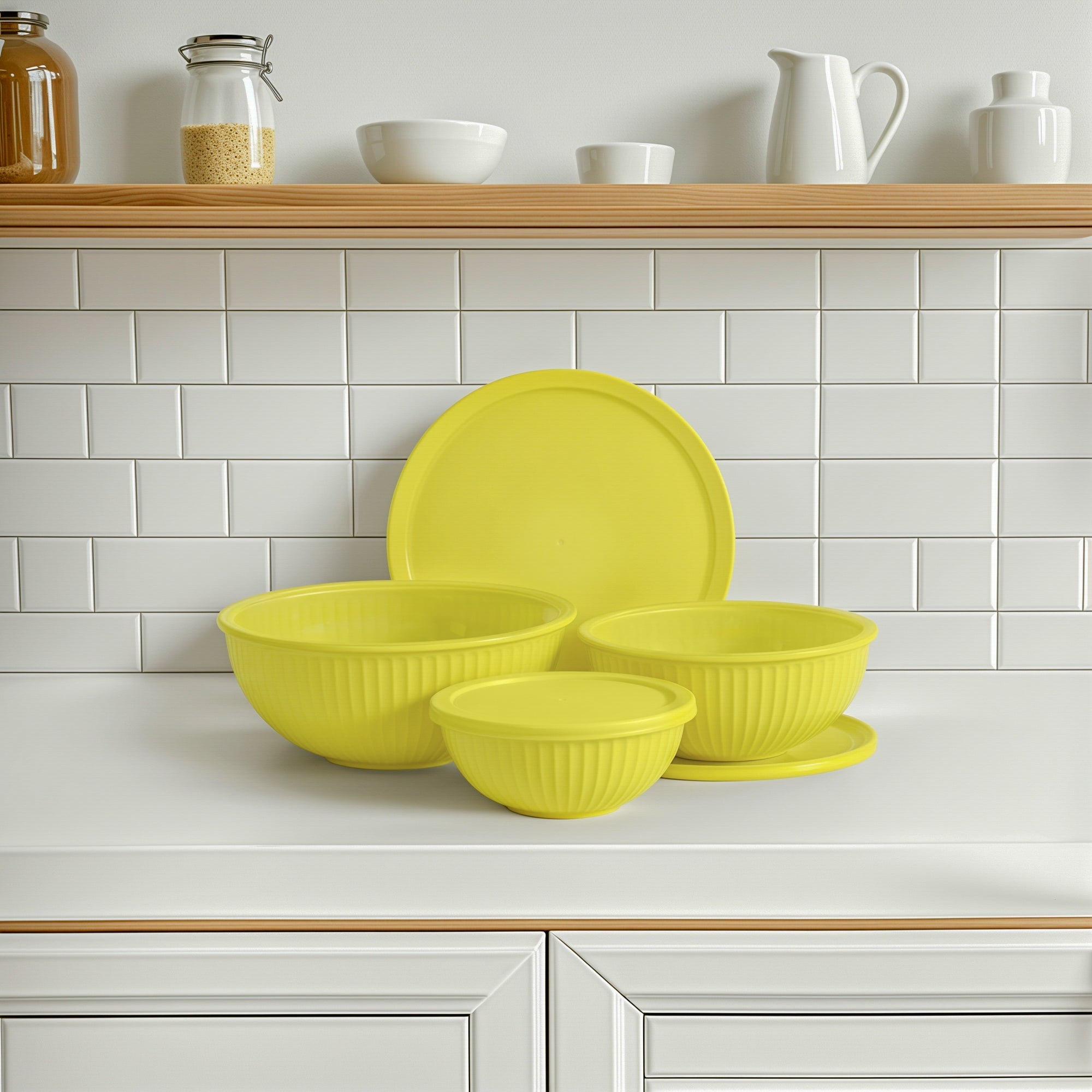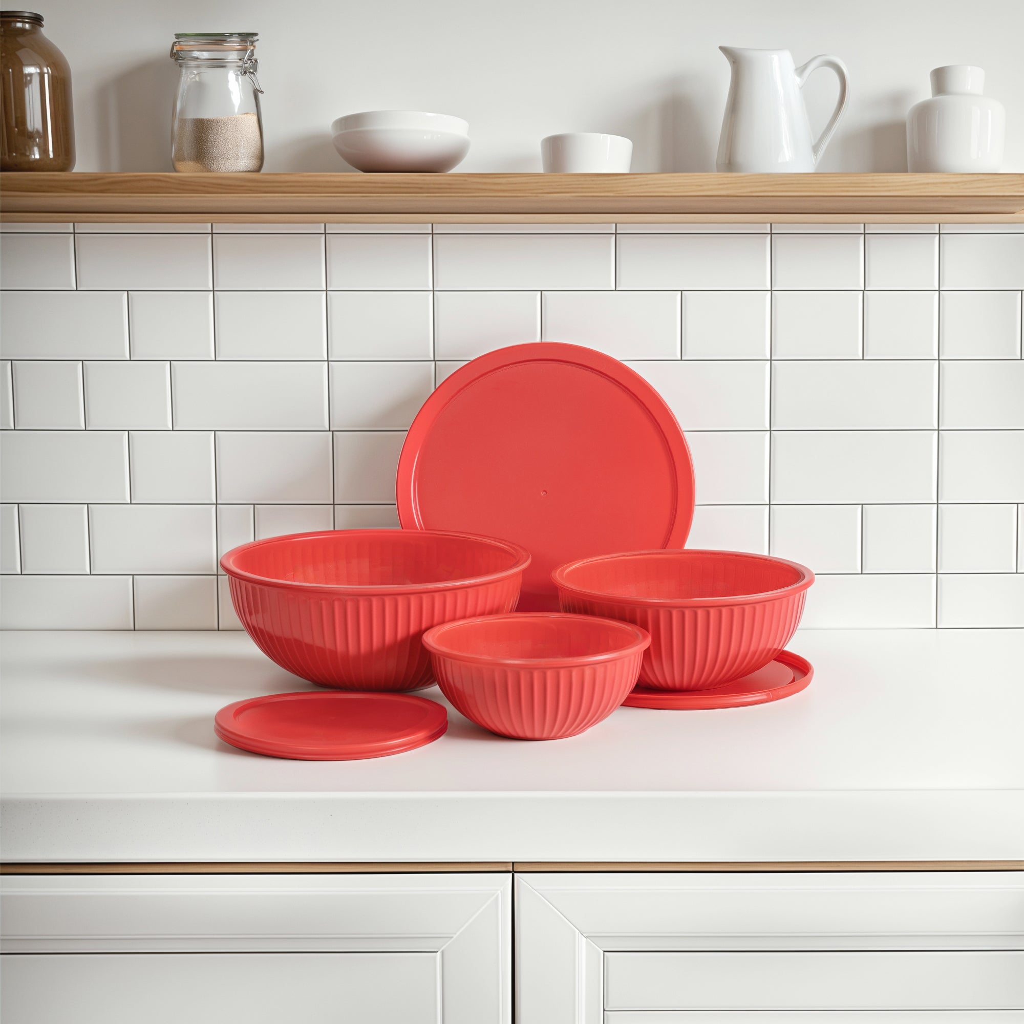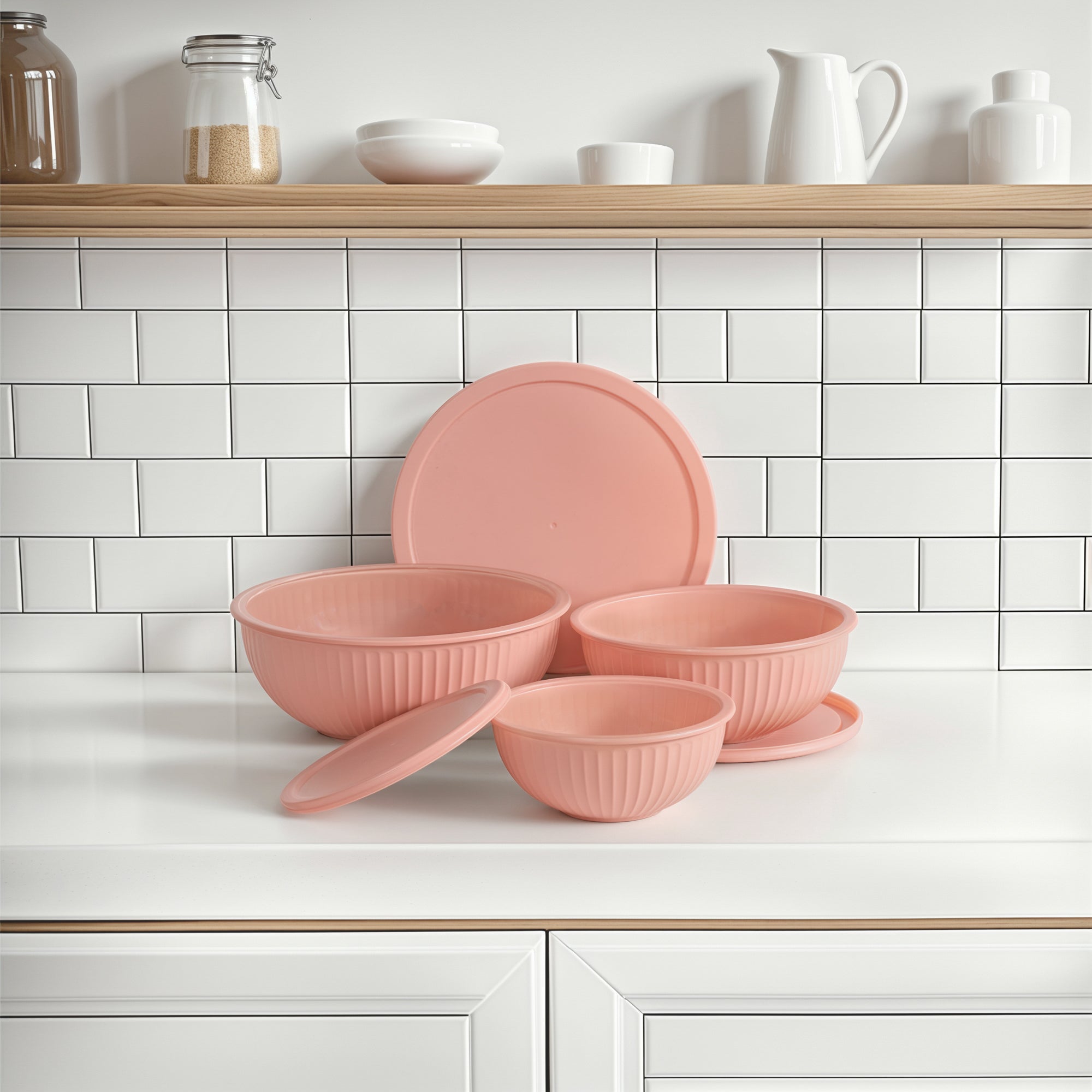 • Available Sizes: Each set includes three bowls with matching pressure-fit covers for secure storage.
