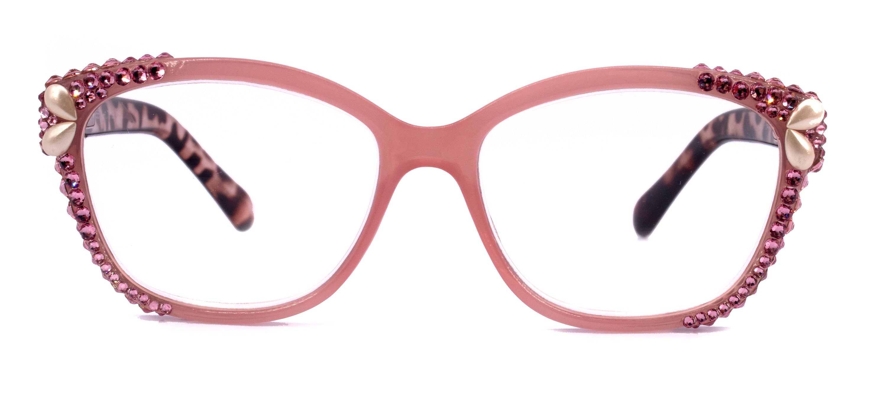 Savannah, (Bling) Women Reading Glasses W (2X line) (Light Rose, Rose, Pearl Teardrop)Genuine European Crystals. (Pink) NY Fifth Avenue.