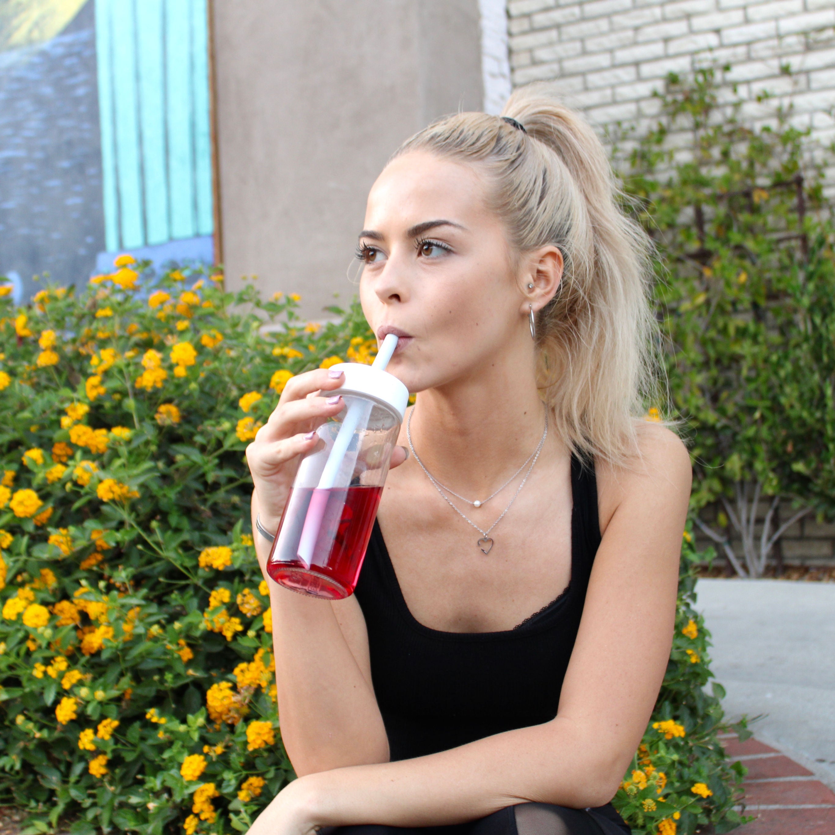 EASY TO CLEAN & INSTALL: Just pop the lid on the bottle, insert straw and drink. Dishwasher safe.