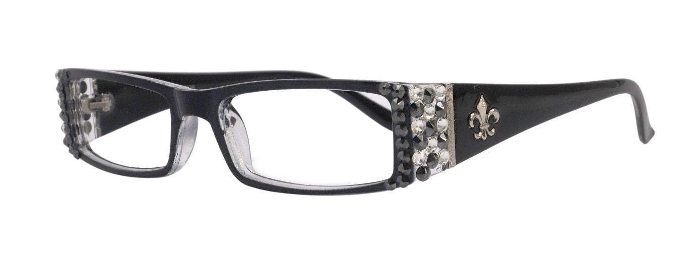 The French, (Bling) (Fleur De Lis) Women Reading Glasses W (Clear, Hematite) Genuine European Crystals (Black) Frame NY Fifth Avenue