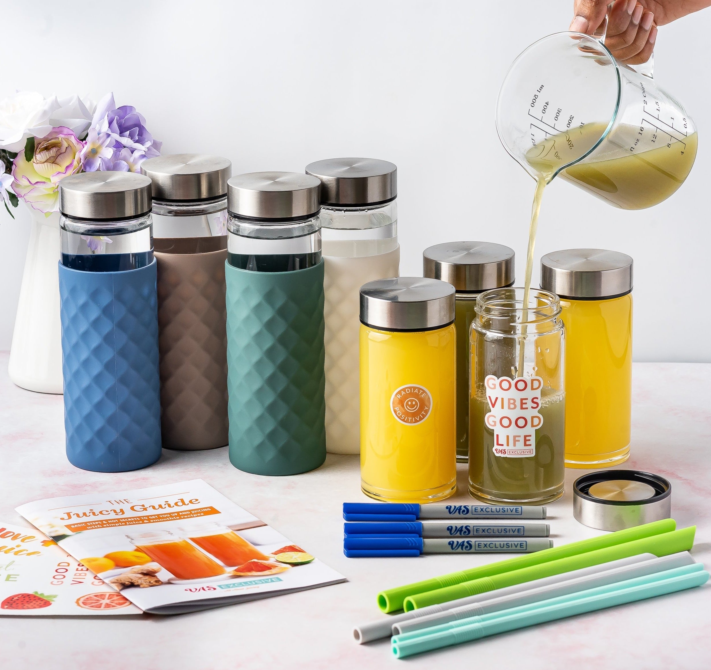 • Want to make hot beverages like tea and coffee too? This set is the right one for you as the glass bottles are made of borosilicate glass - it can handle both hot and cold temps.