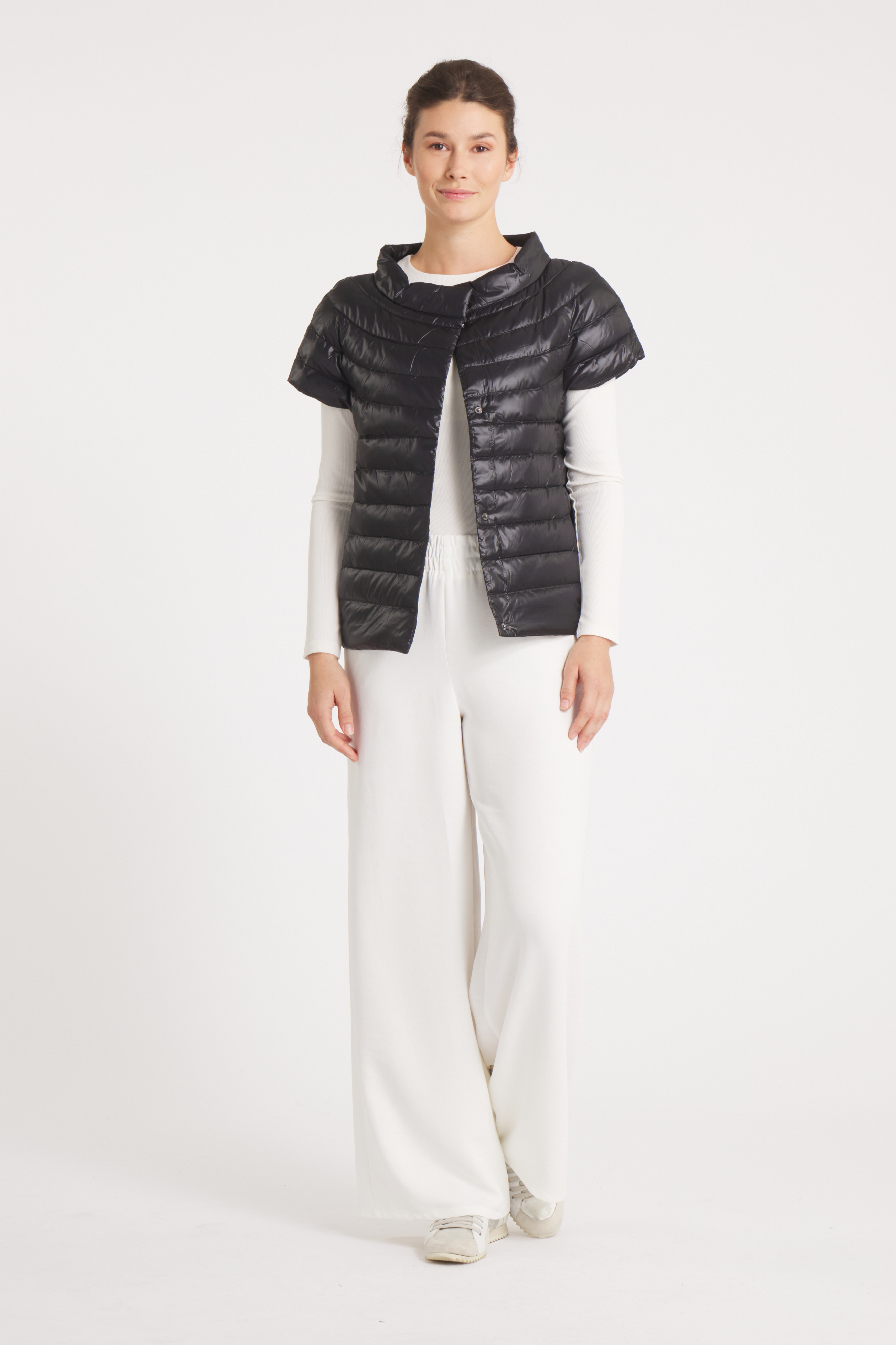 Introducing The St Barts Down Vest - a luxurious and exclusive 1/4 sleeve vest crafted from ultra-light and plush materials.