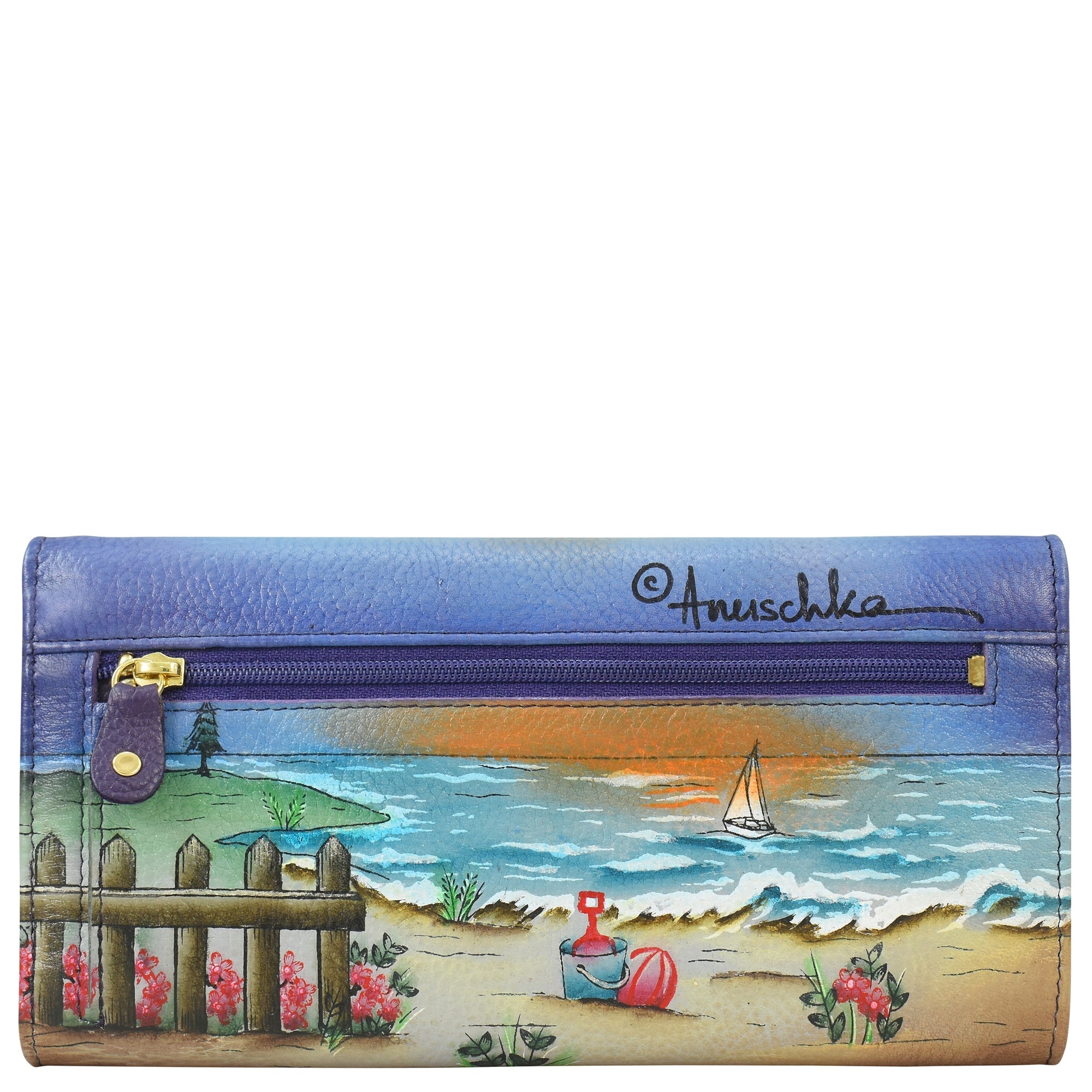 Rear zipper coin pouch.