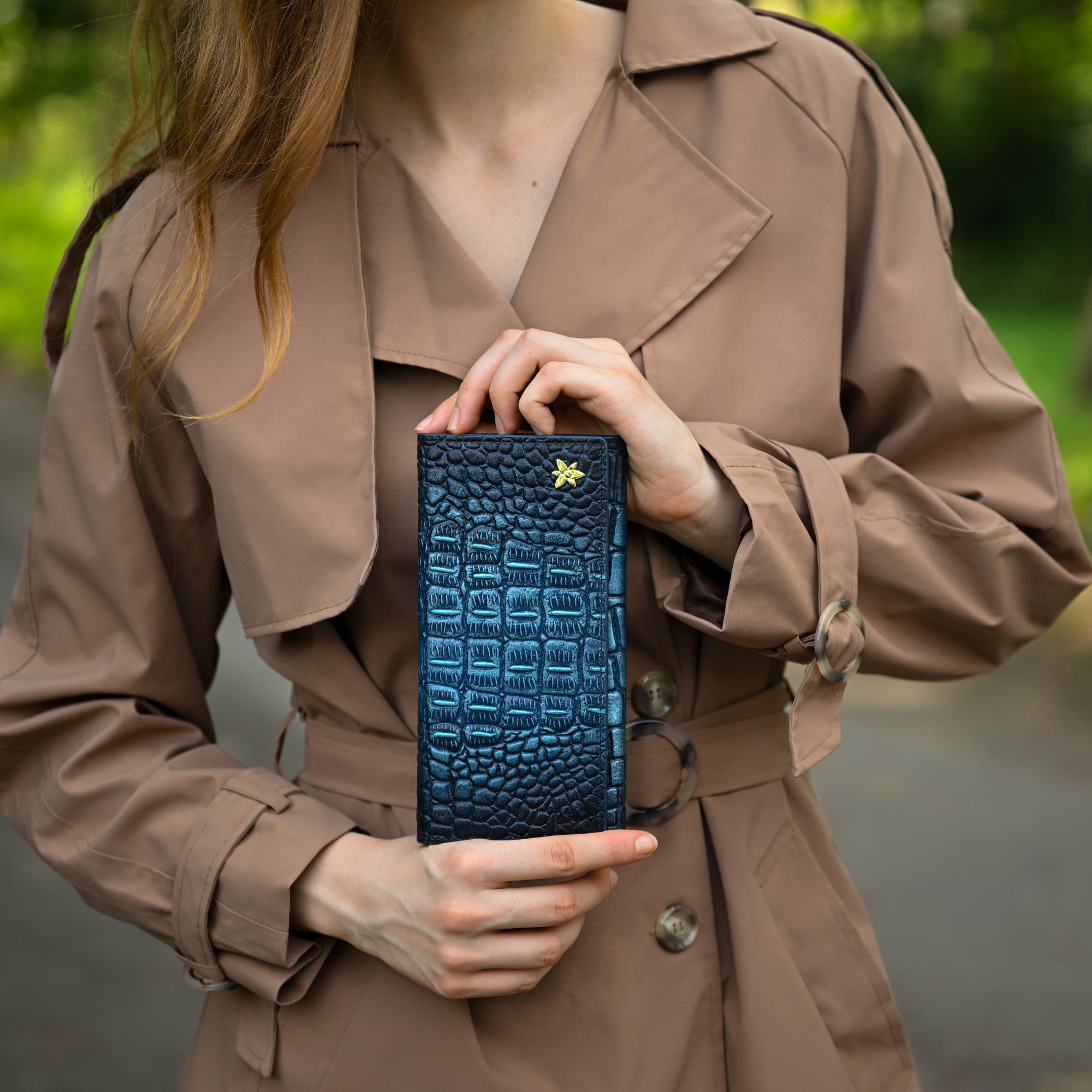 Rear zipper coin pouch.