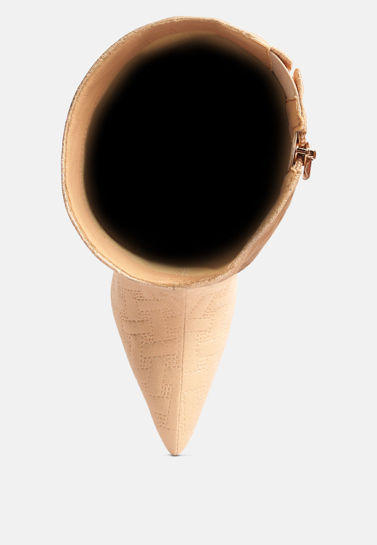Tinkles Embossed High Heeled Calf Boots