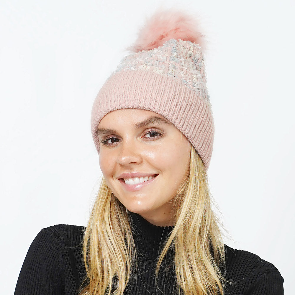 Wrap yourself in cozy chic with our Tweed Look Pom Pom Knit Beanie Hat. The textured tweed design and playful pom pom detail add a touch of charm to any outfit. Perfect for brisk walks in the park or coffee dates with friends, this beanie is a must-have accessory for the colder months. Elevate your winter style effortlessly.