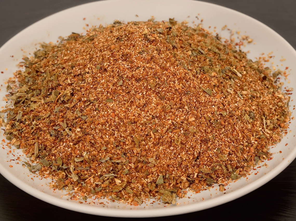 Ingredients:Salt, Paprika, Cayenne, Black Peppercorn, Garlic, Onion, Cumin, Coriander, Mexican Oregano, Sweet Basil