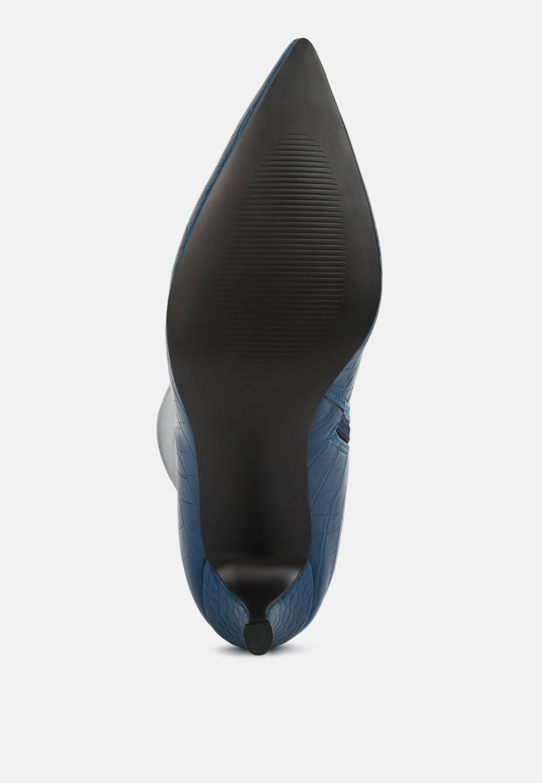 Mid Heel pointed toe calf boots with side zipper fastening looks gorgeous, raises style and comes with an easy to wear side zipper fastening.