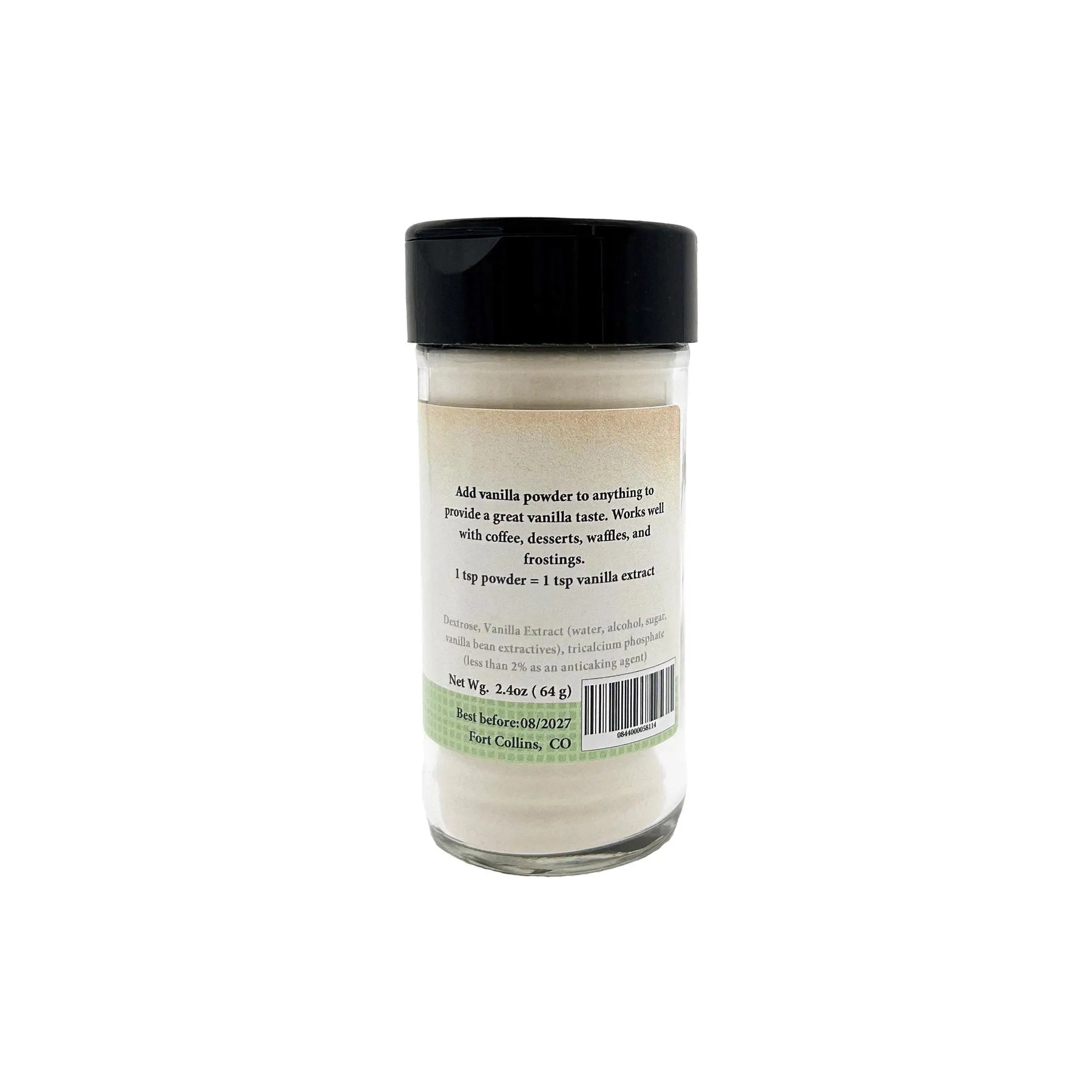 Add vanilla powder to anything to provide a great vanilla taste. Works well with coffee, desserts, waffles, and frostings. 1 tsp powder = 1 tsp vanilla extract