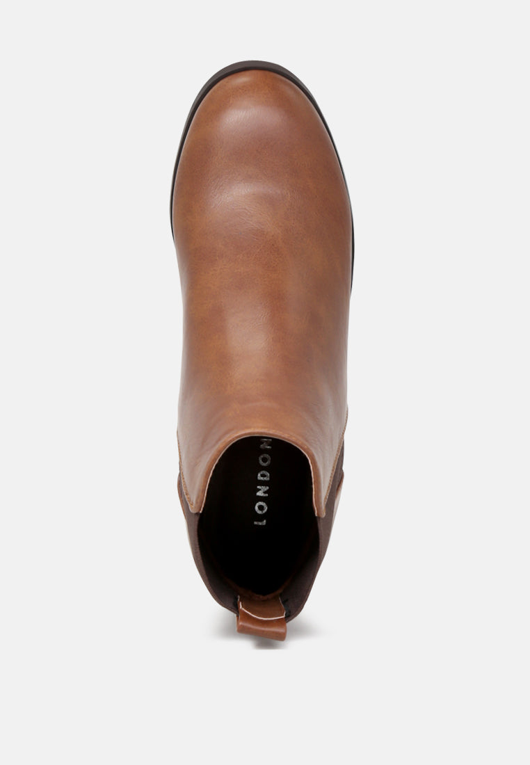 Faux Leather Chelsea styles ankle boots in low block heel with elasticated gusset detail. The stylish comfy boots is a nice transition style as summer fades.