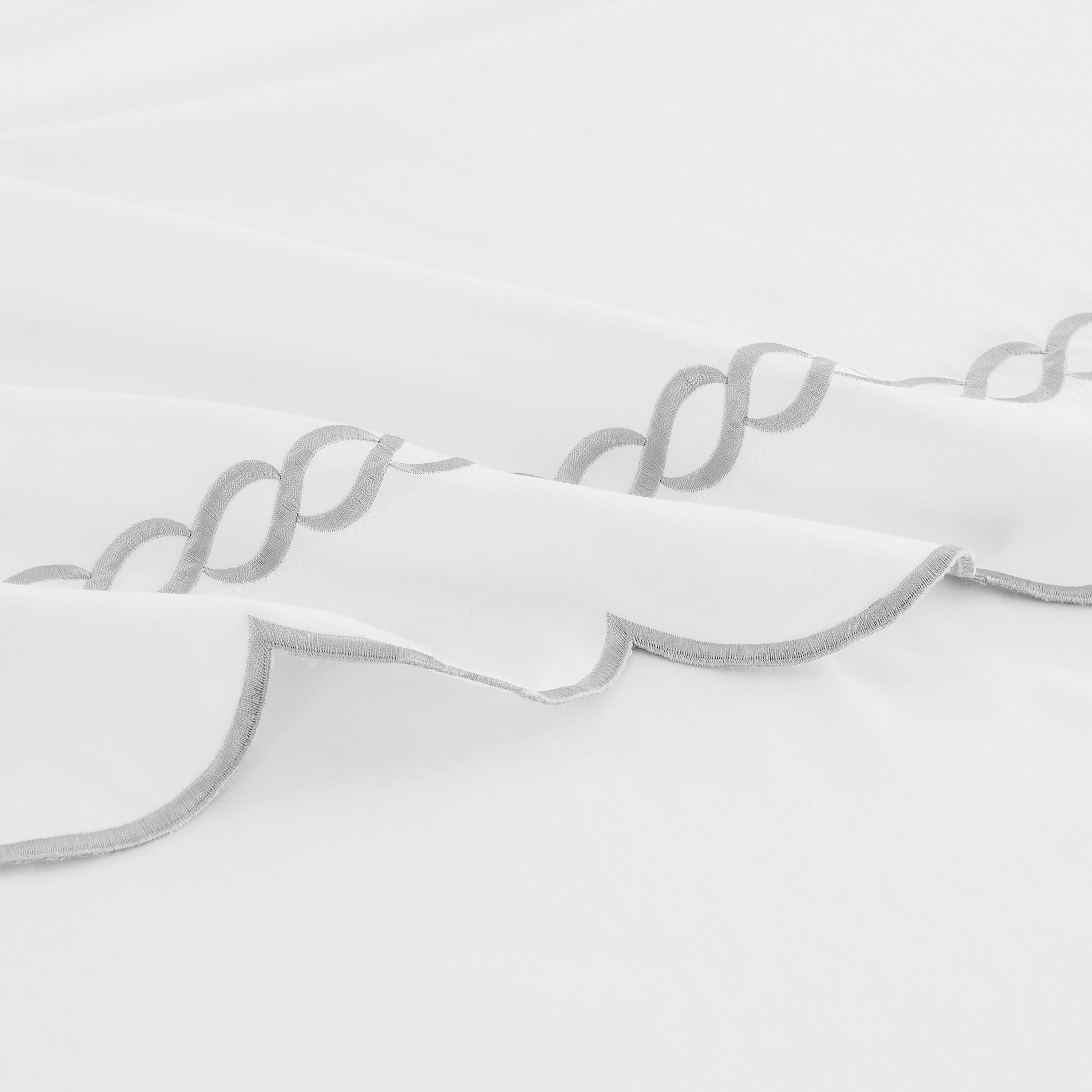 600 Thread Count Scallop Rope Embroidered Cotton Pillowcase Pair