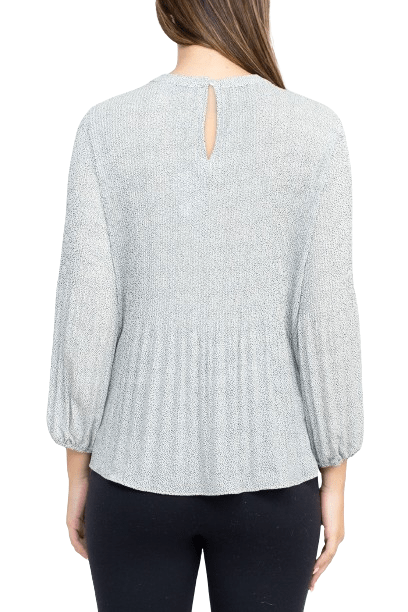 Featuring a classic crew neckline and chic 3/4 sleeves, this top exudes effortless elegance. The keyhole back adds a touch of sophistication, while the ruched waist detail creates a flattering silhouette. With its multi-print design, this top adds a pop of personality to any outfit.