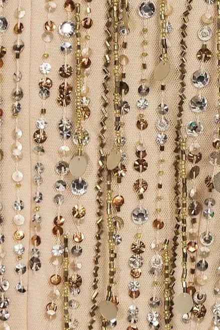 • Dazzling sequin and beaded embellishments catch the light for a glamorous look.