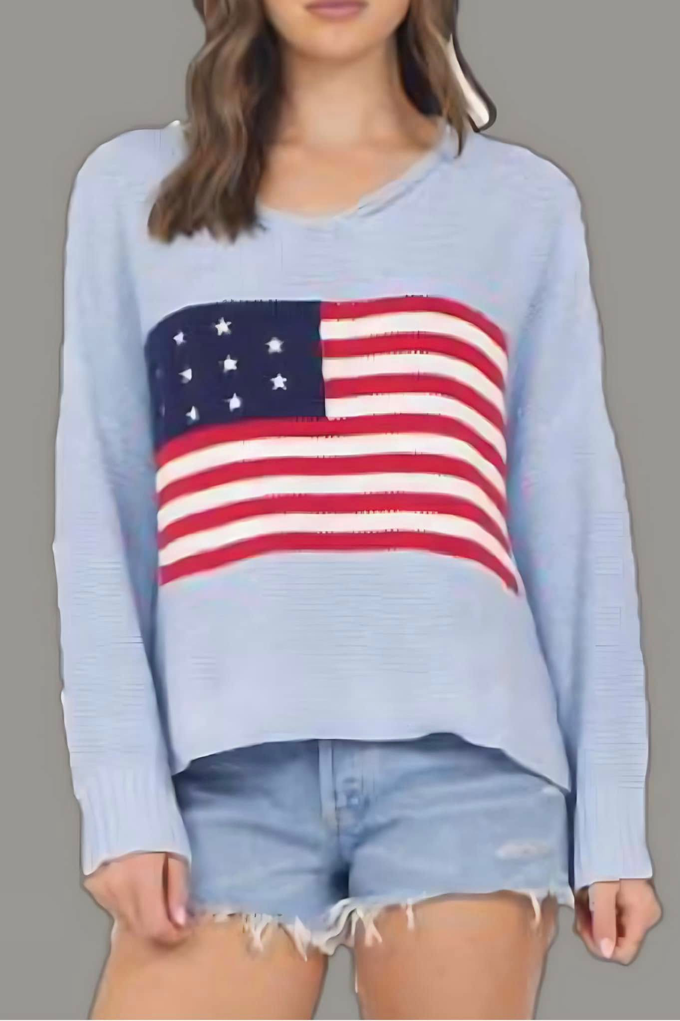 - American flag embroidered on sweater
