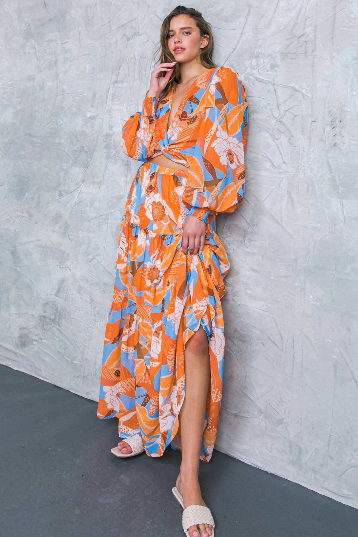 The SUMMER MUSE WOVEN TOP will keep you comfortable and stylish all day. Crafted from lightweight fabric, it features a V-neckline with a front twist detail, long sleeves with smocked cuffs, and a smocked back waistband for easy movement. With the perfect balance of comfort and style, you'll be sure to make a statement.