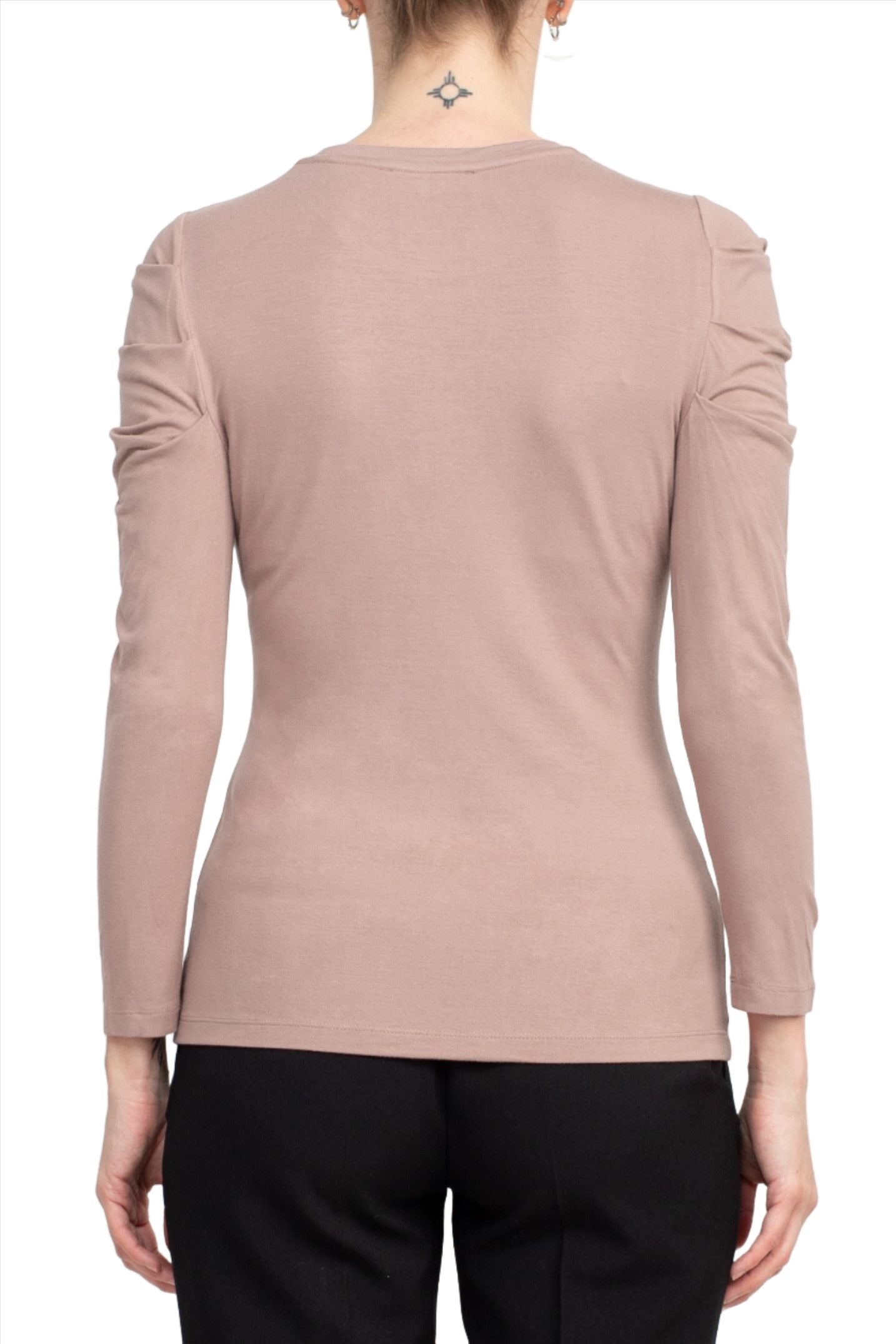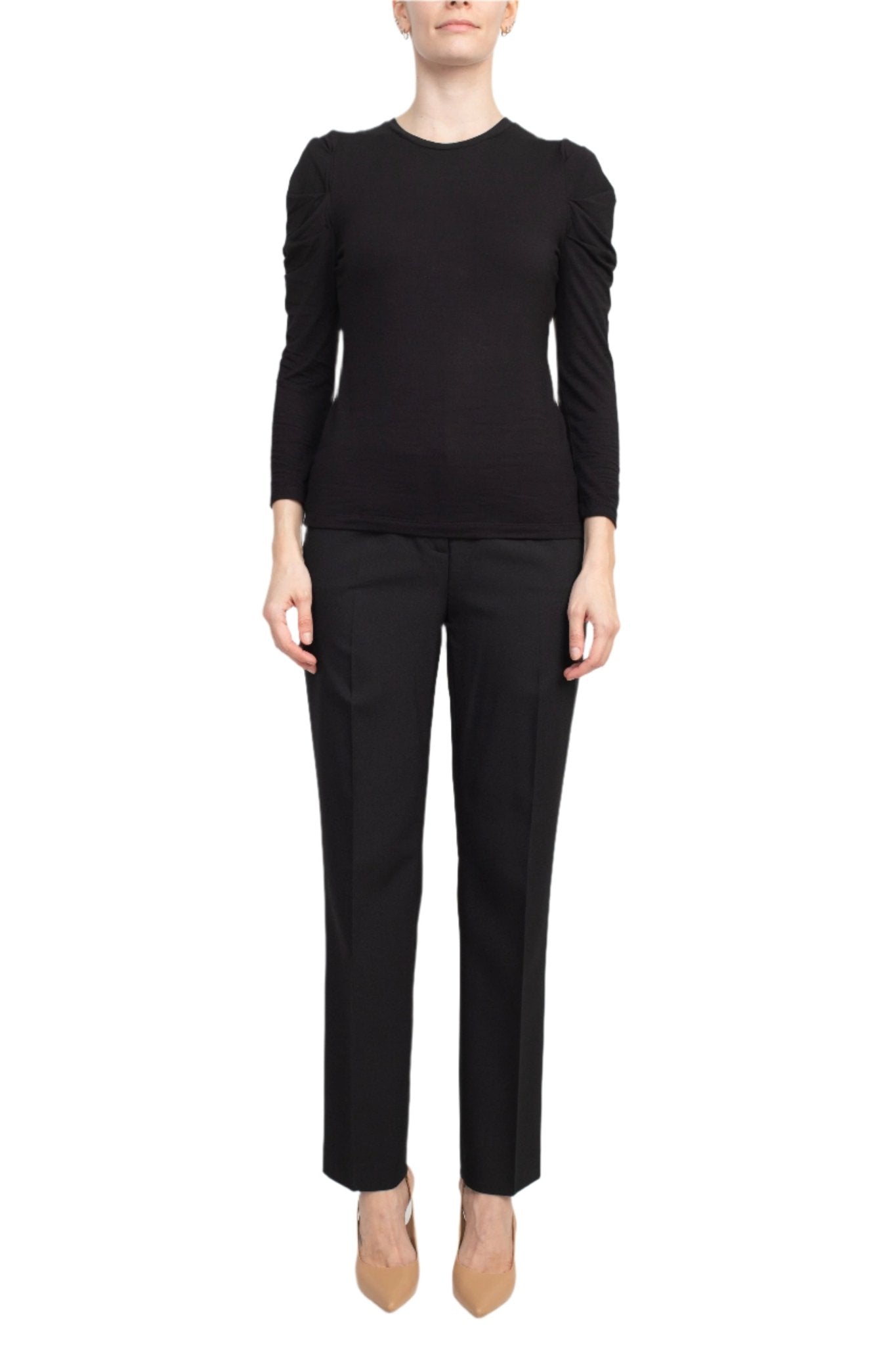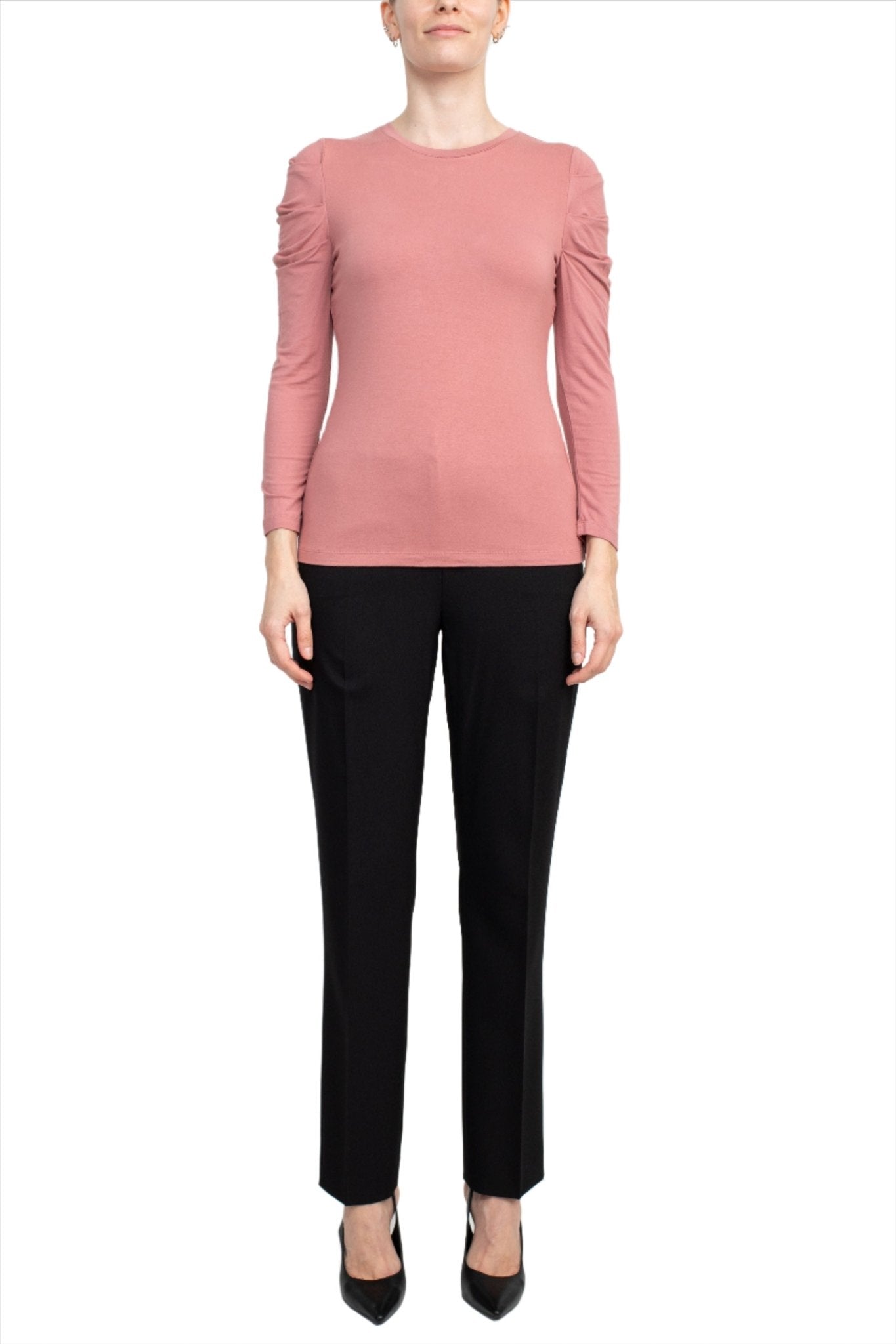 Elevate your beautiful looks with the Catherine Malandrino Crew Neck Long Sleeve Ruched Shoulder Solid Knit Top