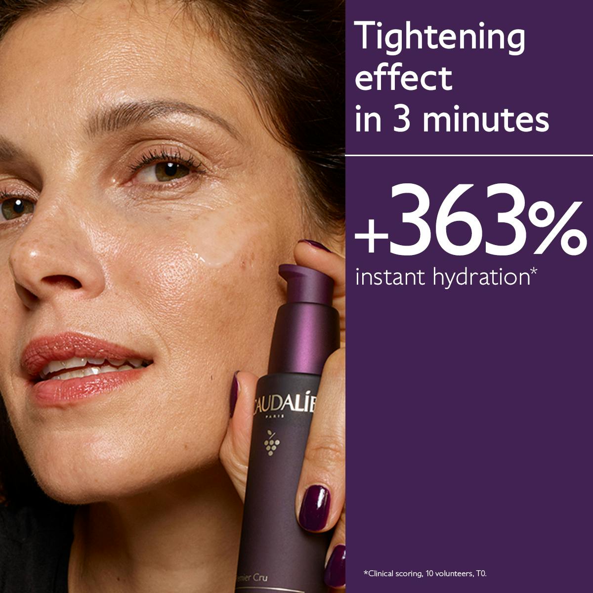 The Serum Premier Cru offers the skin and intense hydration thanks to its high concentration of hyaluronic acids (high and low molecular weight).