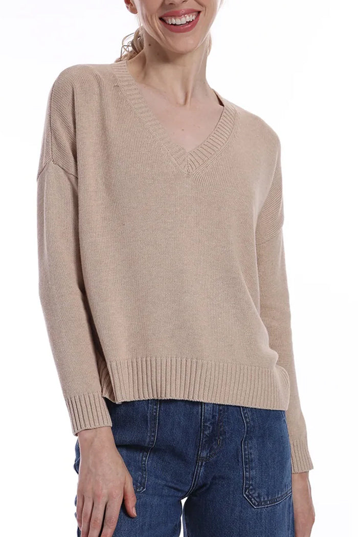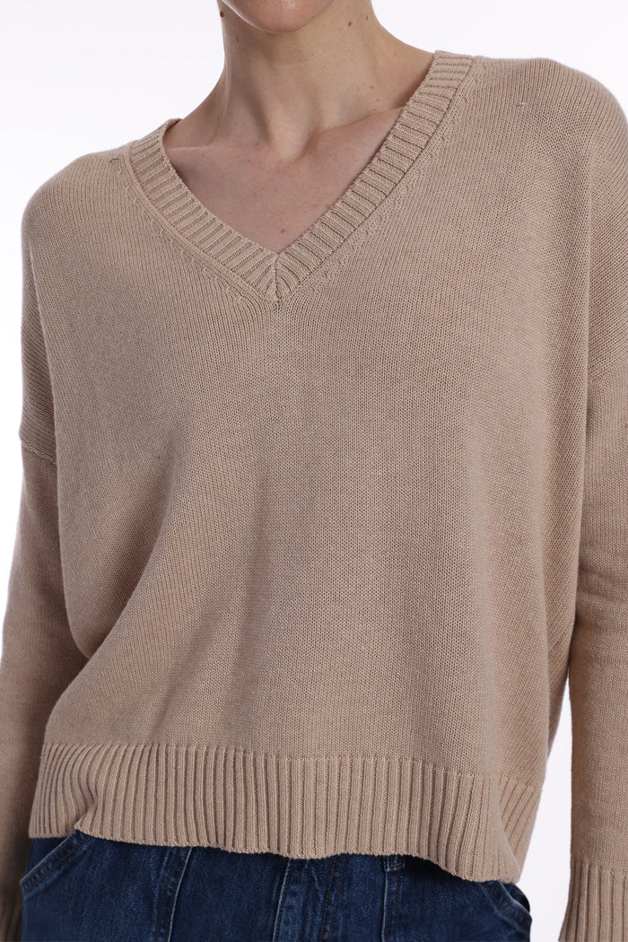 This top radiates luxury and comfort, thanks to its exquisite blend of cotton and cashmere. The relaxed, boxy silhouette and elegant V-neck will bring an air of sophistication to any occasion! Product Specifications: -95% Cotton 5% Cashmere -Dry Clean or Hand Wash