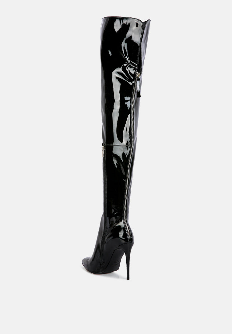 Stiletto high heel boots are the perfect footwear for a night out on the town. They look lovely on your legs and are attractive and fashionable. The twin zipper facility provides excellent stability and support. Look sharp, petite, and dazzling in this pair of stretch Patent PU long boots which is worth every dollar spent.