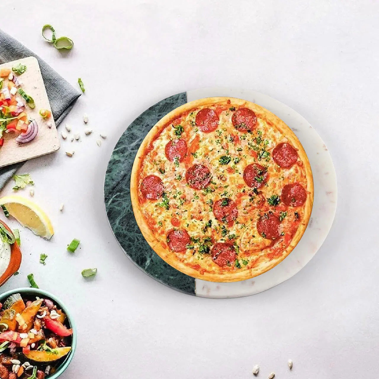 Crafted from high-quality marble, this round cheese board is a chic centerpiece for social gatherings or dinner parties. Impress your guests by serving an assortment of artisanal cheeses, crackers, and fruits on this sophisticated board. Its classic marble design with subtle veining adds a touch of luxury to any occasion.