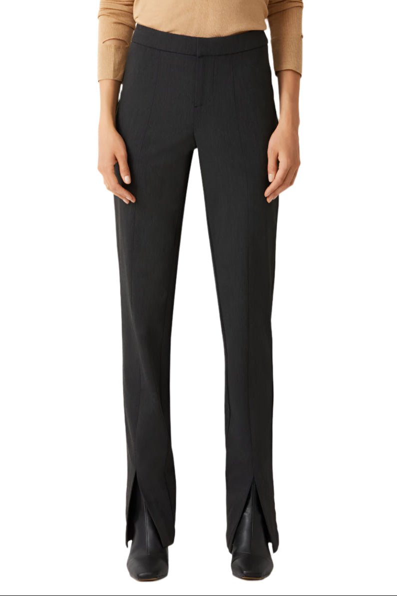 ECRU Designs Banded Waist Button Hook Zipper Closure Slit Front Hem Stretch Crepe Pant