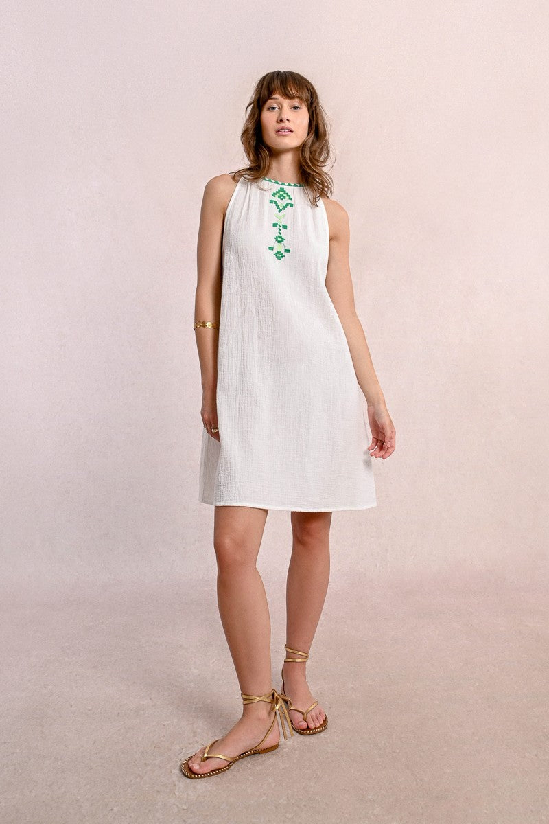 EMBROIDERED POPLIN SHORT DRESS WITH KEYHOLE BACK