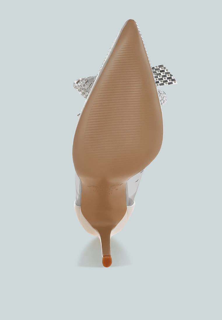 Like a modern-day Cinderella, step into your new beginning looking like an elegant and alluring princess. The beautifully embellished rhinestones on the pumps look like glistening diamond droplets exhibiting opulence and vogue which would look stunning as wedding heels. The embellished bow amplifies the look of the clear pumps while the cushioned insoles cut strain making them a comfortable party pair.