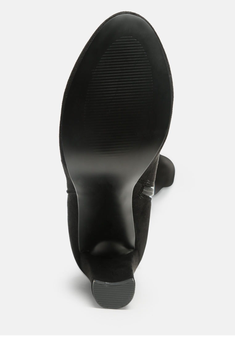 Ready to kill with a look? Our Fauna Knee High Block Heeled Boots are perfect for women's boots for an evening or a crazy night out. These heeled boots come with paneled columns, for utmost comfort and a lightly padded insole to keep your feet happy. A closed almond toe gives it a sleek look and a side zipper opening helps with easy access. Pair with a short dress to bewitch anyone around.