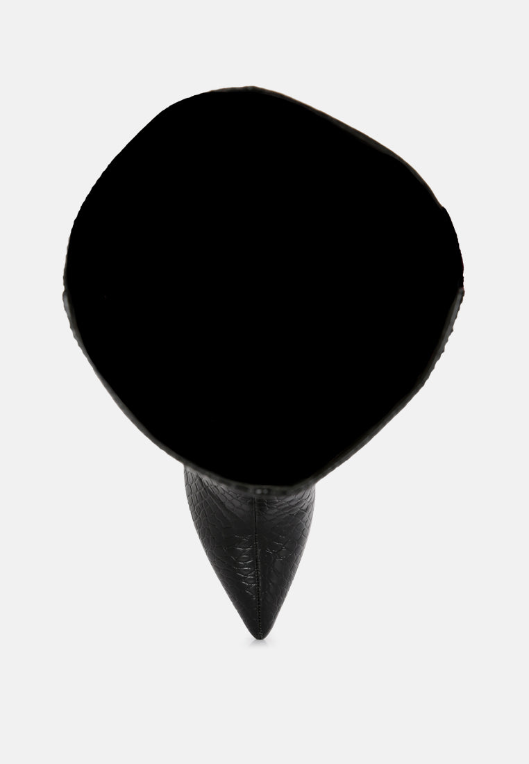 Croc Calf Zipper Boots in black are a must-have this season, with a side-zipper opening and an easy-to-wear design. Comes with cut-out thin block heel which graciously adds height and looks elegant.