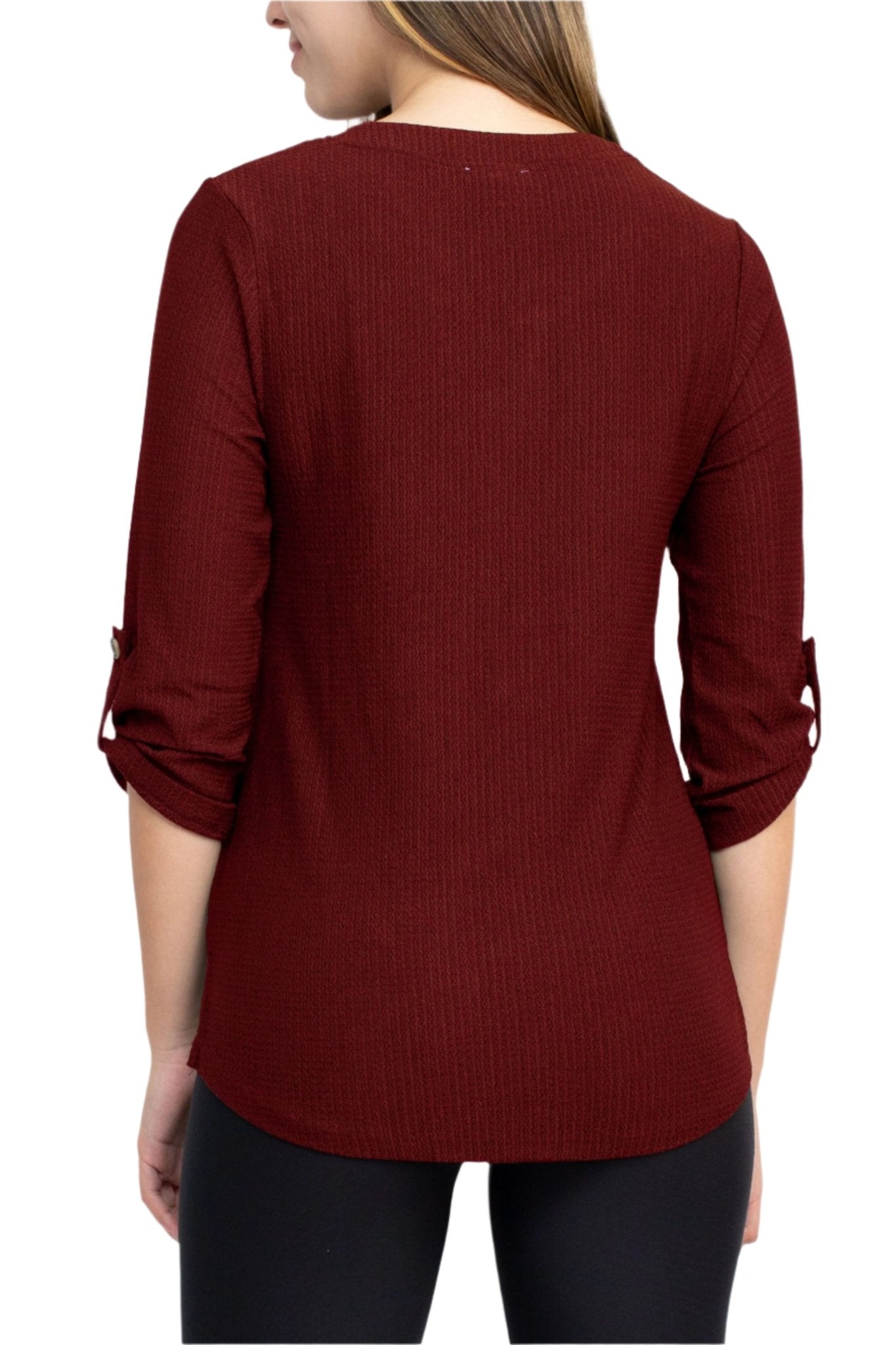 Why Choose the Floral + Ivy Notched Button Down 3/4 Sleeve Solid Knit Top with Front Pocket?